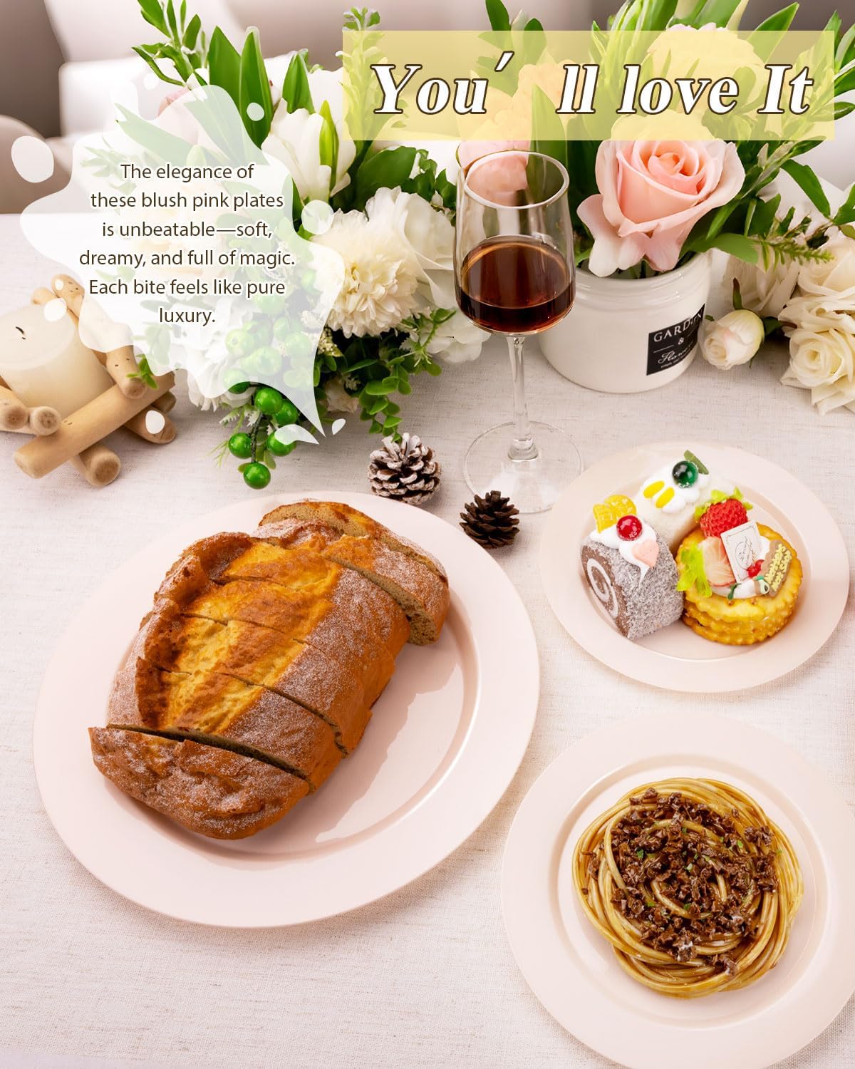 - IDEAL FOR ALL OCCASIONS - Our sleek pink plastic dinnerware set brings a modern and luxurious touch to any dining experience. Perfect for a variety of events, such as baby showers, Valentine's Day, weddings, princess tea parties, birthday celebrations, anniversaries, and various large-scale activities.