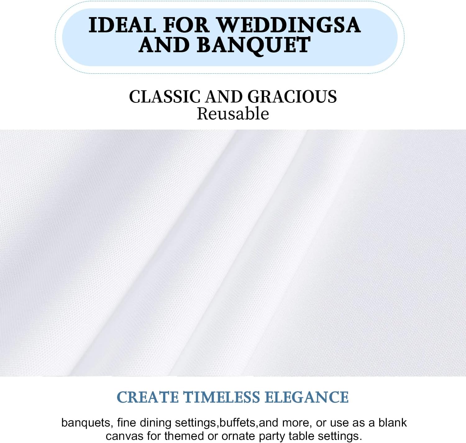 - Wide Applications: This polyester white tablecloth perfect for parties, dining table, birthday, wedding reception, anniversary, picnic, barbecues, christmas, catering or any other party decorations.