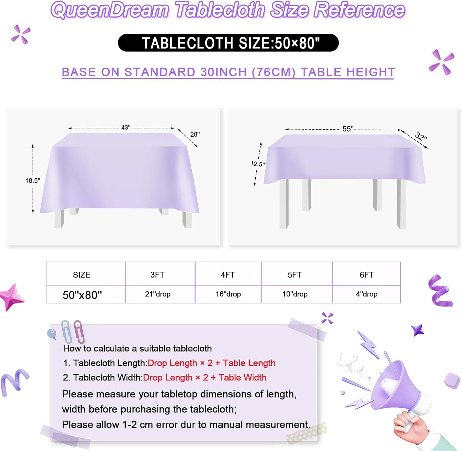 - Easy to Maintain: This purple tablecloth is bright and easy to clean. Just wipe it with a damp cloth. If you need a custom tablecloth size, please contact us. QueenDream tablecloths are worth owning!
