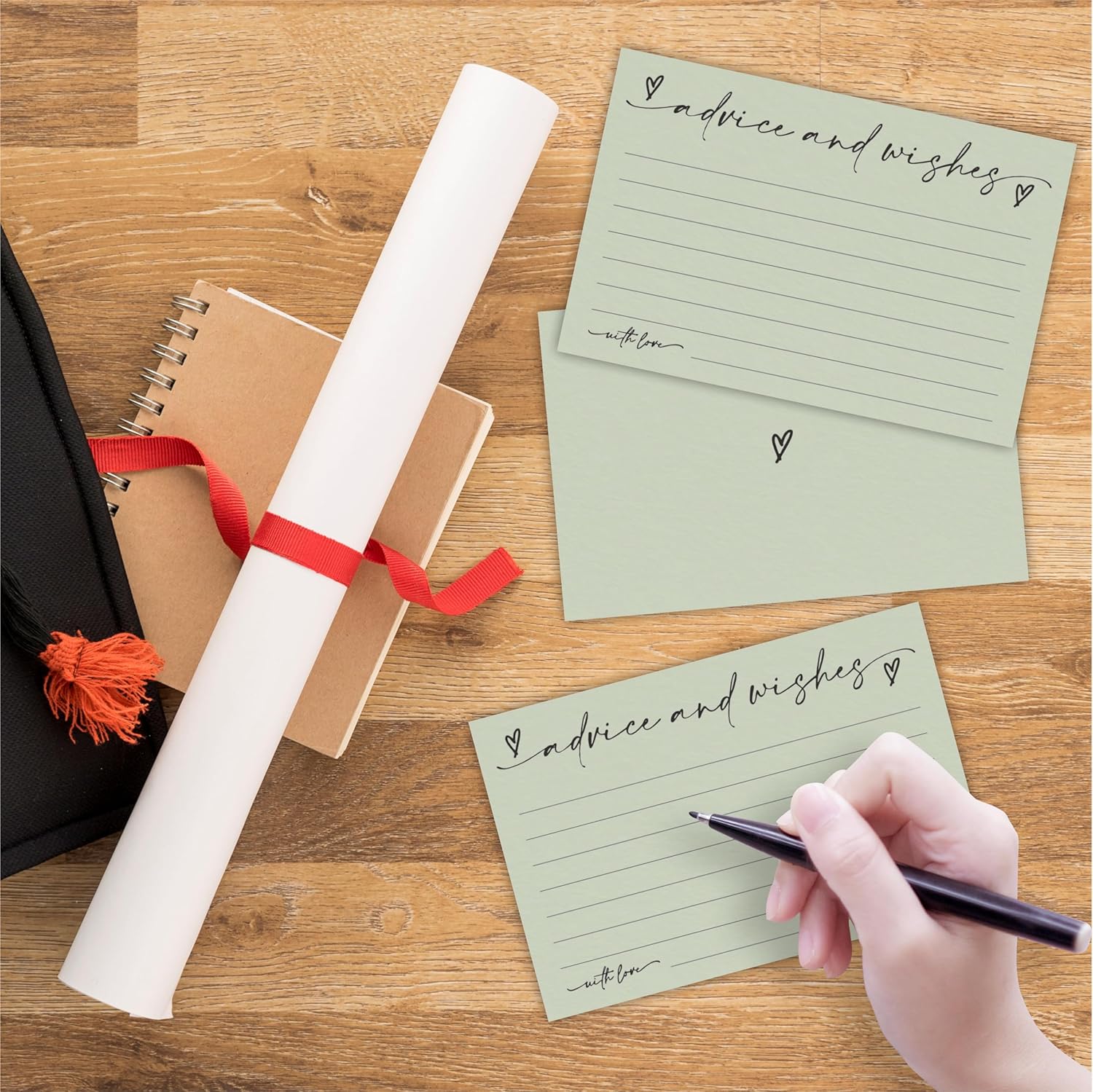 30 Advice & Wishes Cards - moss green - Double Sided Fill-In Advice Cards For Bridal, Wedding, Graduate Party, Mr & Mrs, Retirement, Baby Shower, Party Favor & Supplies - B01