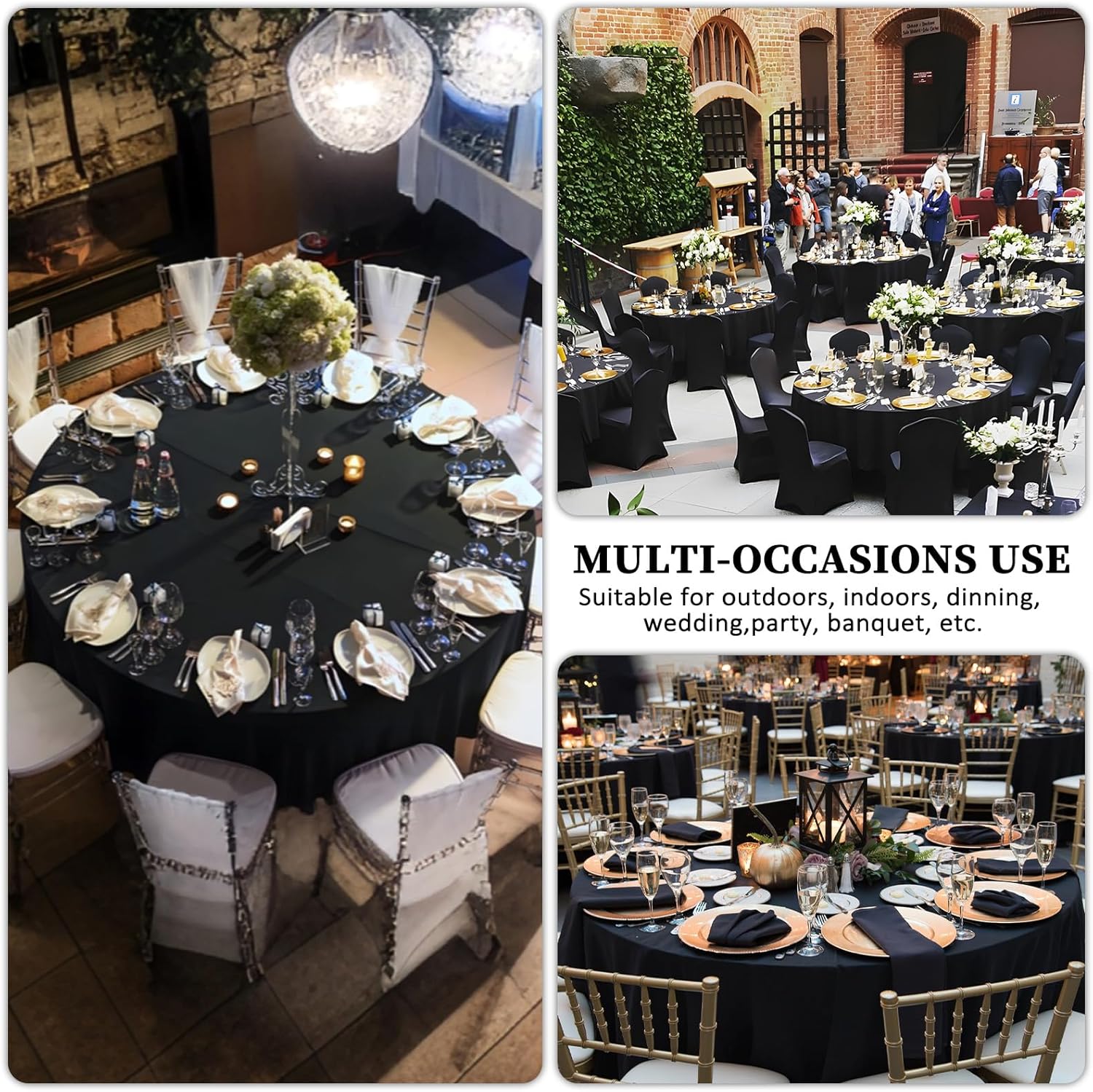 - Excellent Workmanship: Our round black tablecloth are designed with folded borders and precise stitching to ensure an beautiful look and no loose threads, using non-fading dyes to keep black table cloth round table color vibrant and true to life. It also has hemmed edges and seamless construction, which make the black table cloths wrinkle resistant, and you can iron if needed.