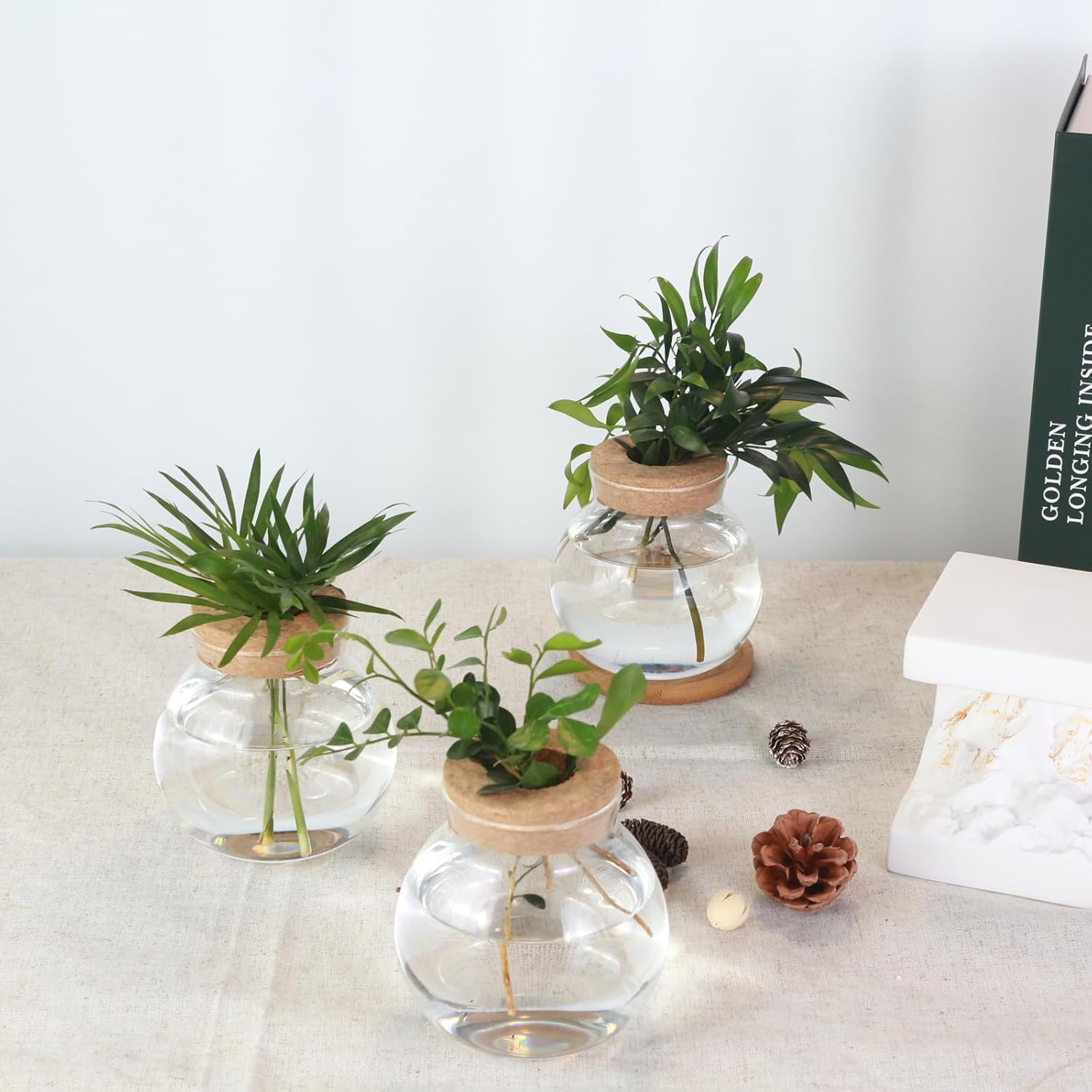 - 【Material】: The transparent glass vase is made of high borosilicate glass, with a cork lid, a bamboo tray, and a simple round shape, highlighting the unique beauty of the plant, and perfectly integrating with home decoration.