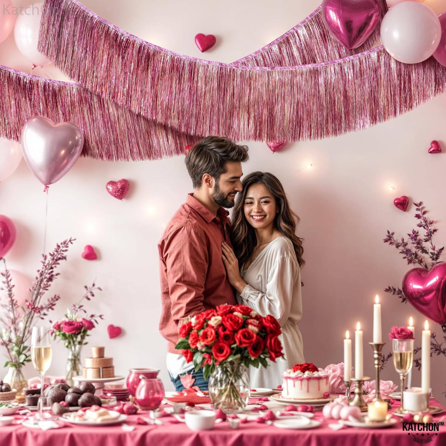KatchOn, XtraLarge Pink Fringe Banner - 6.5 Ft,Pack of 2 | Fringe Garland, Pink Streamers for Birthday,Gender Reveal, Bachelorette Party Decorations | Flamingo Party Decorations