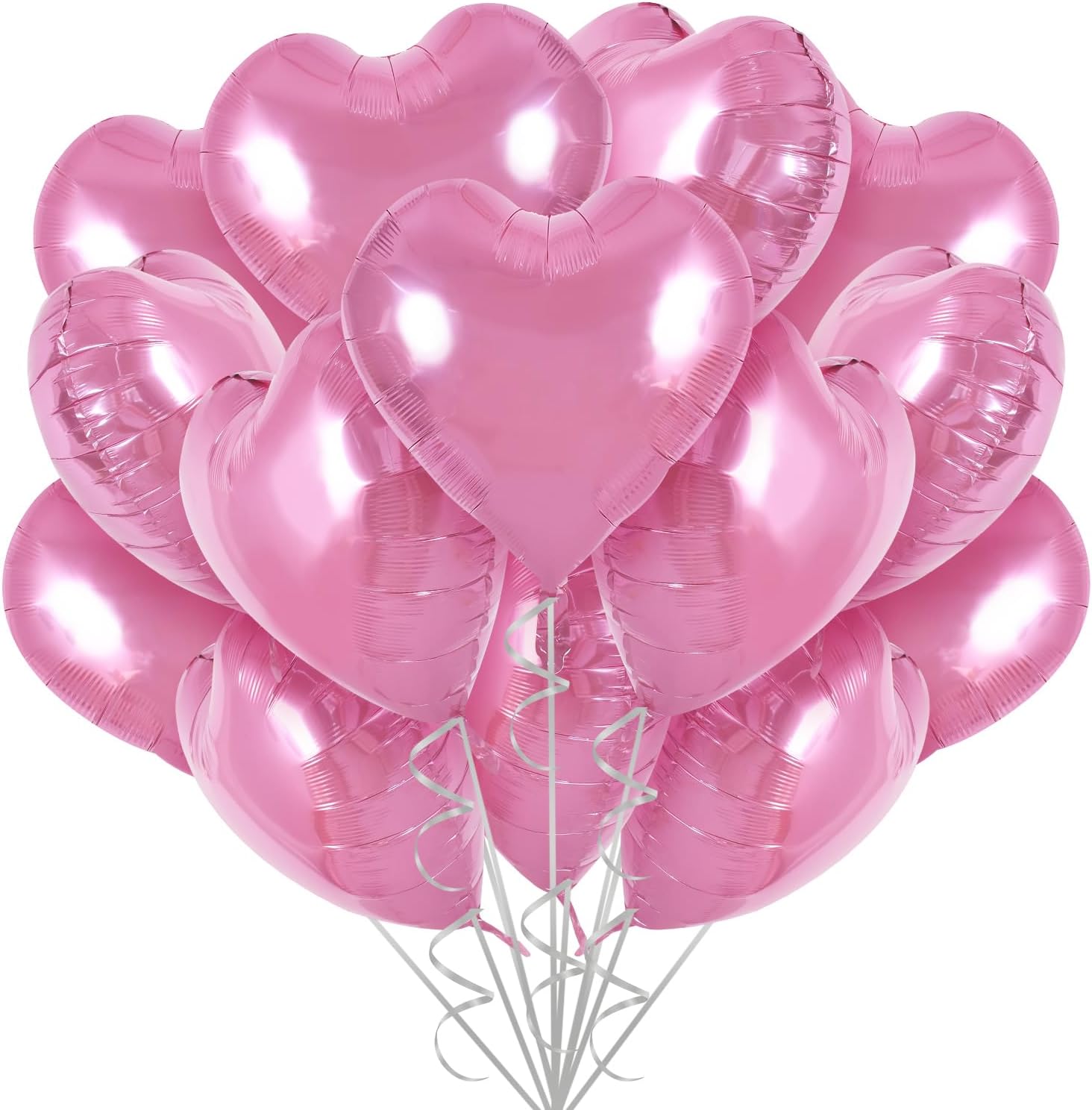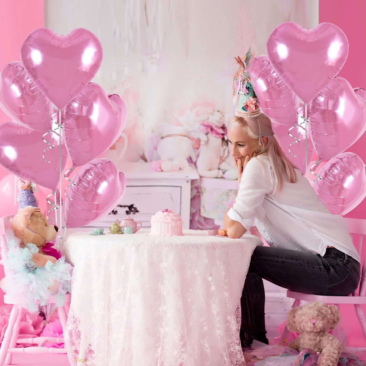 TONIFUL 30Pcs 18 Inch Pink Heart Balloons Pink Heart Shape Foil Mylar Balloons Decoration for Birthday Valentine's Day Wedding Bridal Shower Anniversary Engagement Party Supplies