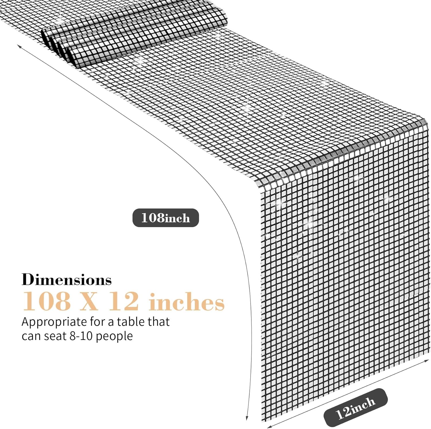 - WHAT YOU WILL GET: You will receive 4 packs black silver disco party table runner and each table runner measures approximately 12 x 108 inches. Its sparkling mirrored silver squares will add a touch of colour to your disco party