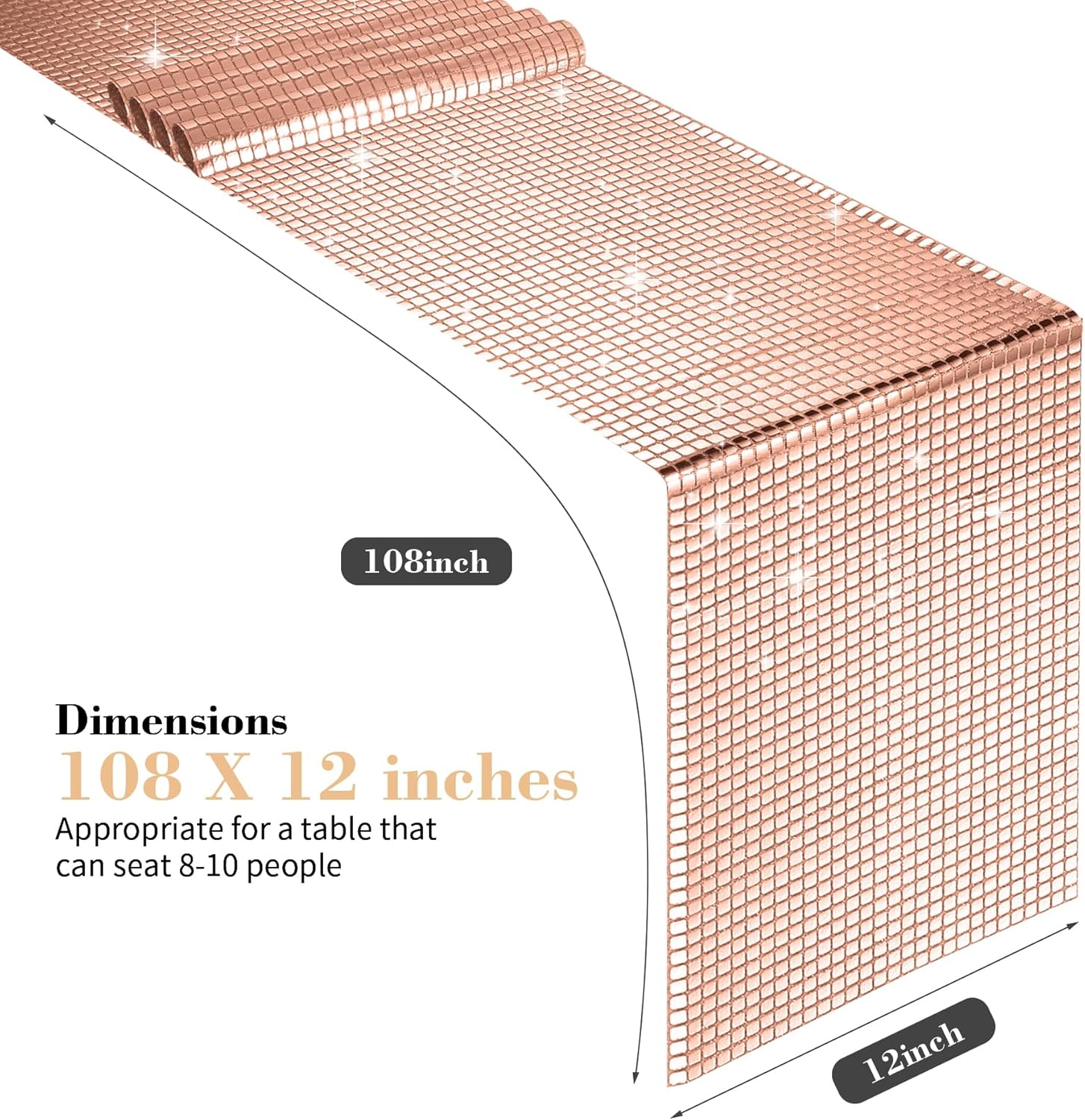 - ROSE GOLD DISCO TABLE RUNNER: You will get 4 packs table runners with sparkling mirrored rose gold squares to add a touch of colour to your themed party. And disco party table runner measures about 12 x 108 inches, suitable for most rectangular tables