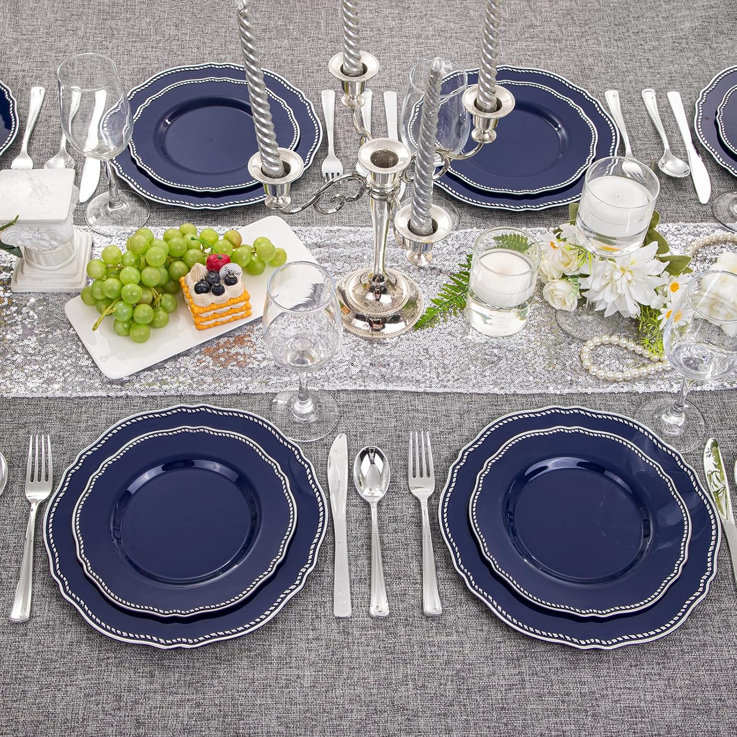 - Elegant Design - These plastic blue plates for party with silver rim look premium and have a elegant vintage design. Their equisite appearance can meet the aesthetic requirements of all people, thus the fancy disposable plates can be used for any occasion without a sense of incongruity