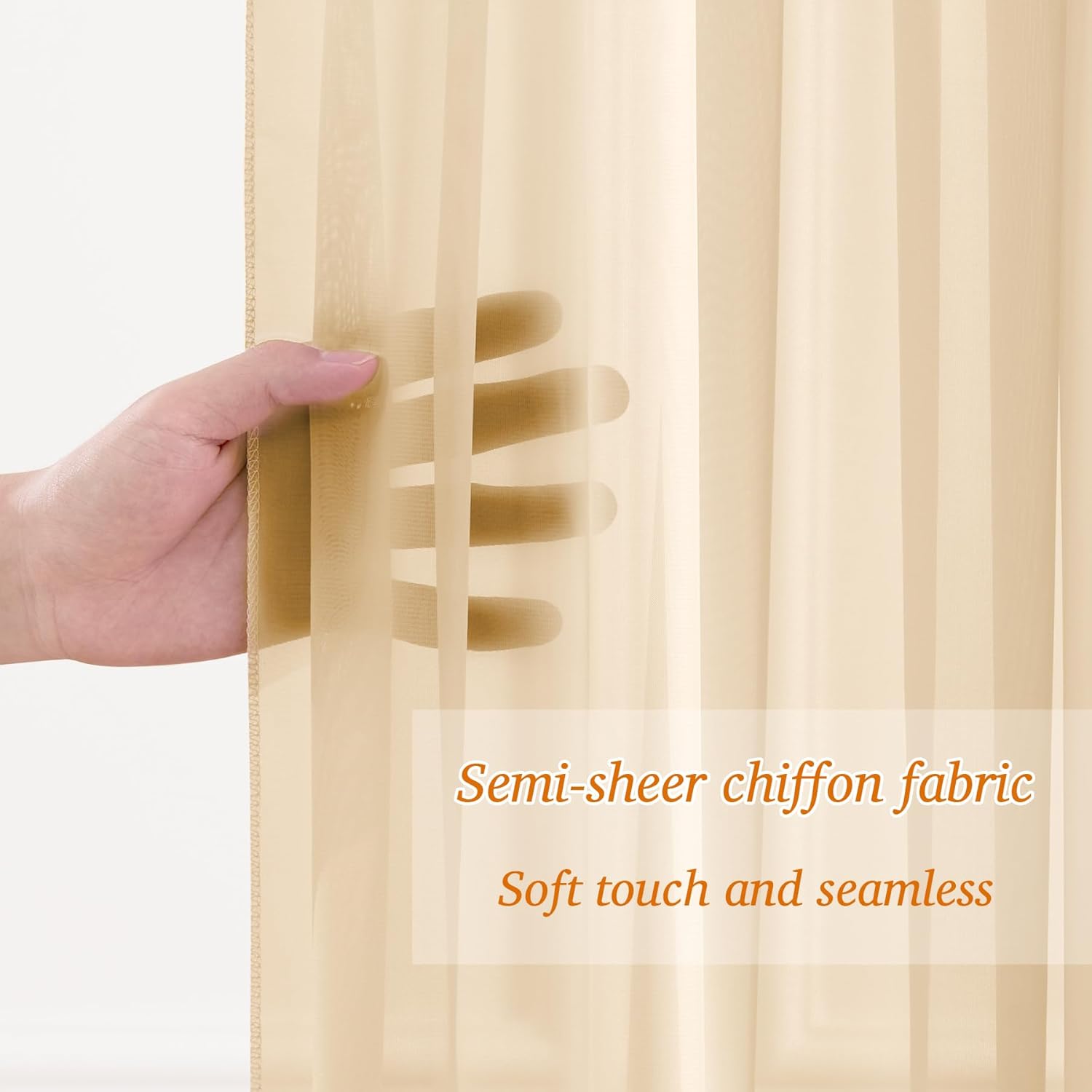 - 【Real Chiffon Fabric】Made of 100% premium chiffon fabric, the 10x10ft champagne chiffon curtains for backdrop are soft but won't tear. Unlike other similar products, the chiffon panels offer a really smooth, wrinkle-free texture that gracefully drapes like curtains, rather than the stiff, tutu-like appearance of some tulle fabrics. It's dreamy and elegant. Perfect for wedding backdrop, baby shower, birthday party, trade show booths or any special occasions decor.