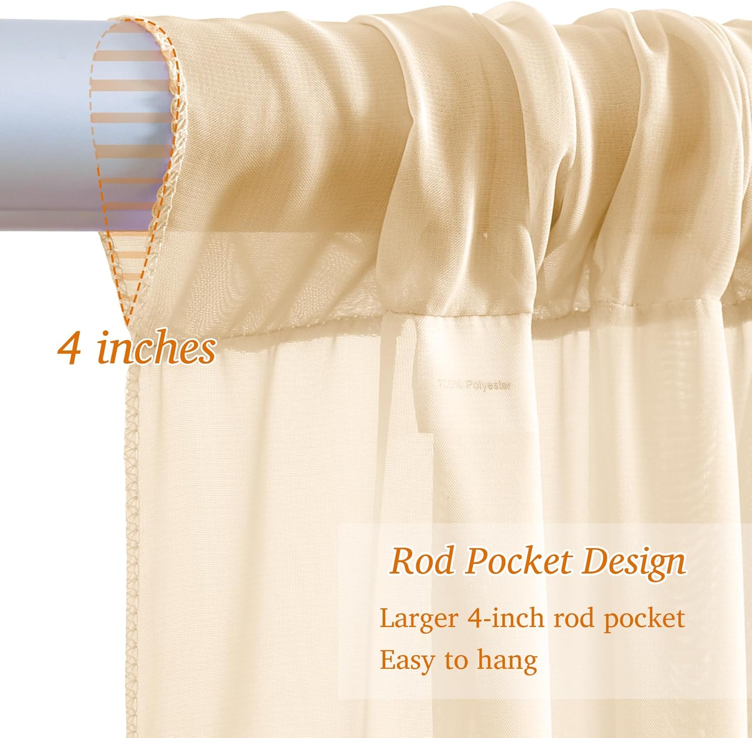 - 【Easy to Assemble】This champagne sheer backdrop curtain with lights is perfect for anyone looking to elevate their event decor effortlessly. The 4-inch rod pocket on top makes installation a breeze. Additionally, 12 clear plastic clips allow for easy attachment of the light string. Then connect to power , done!