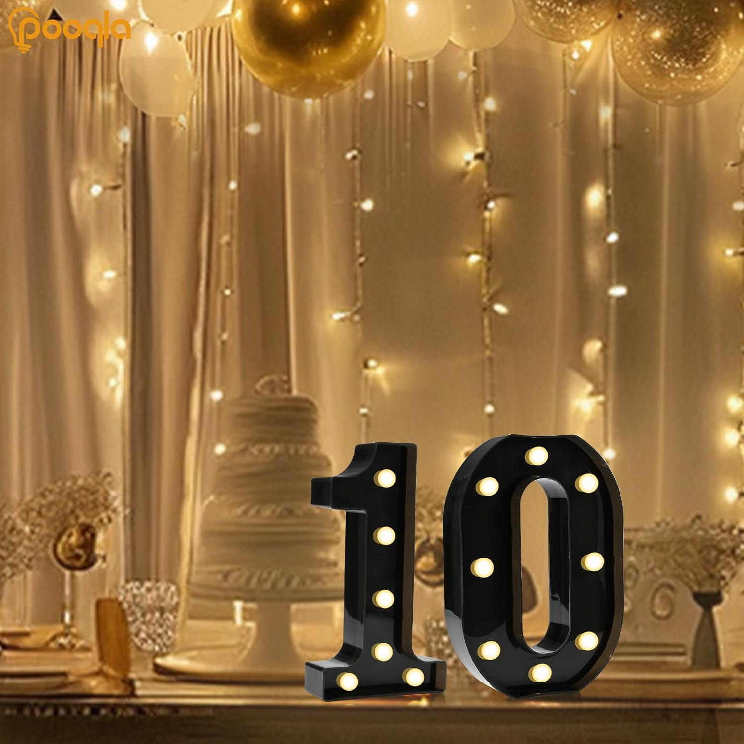 Pooqla Decorative Led Light Up Number Letters, Black Plastic Marquee Number Lights Sign for 10th Birthday Party Wedding Decor Battery Operated Black Decoration 10