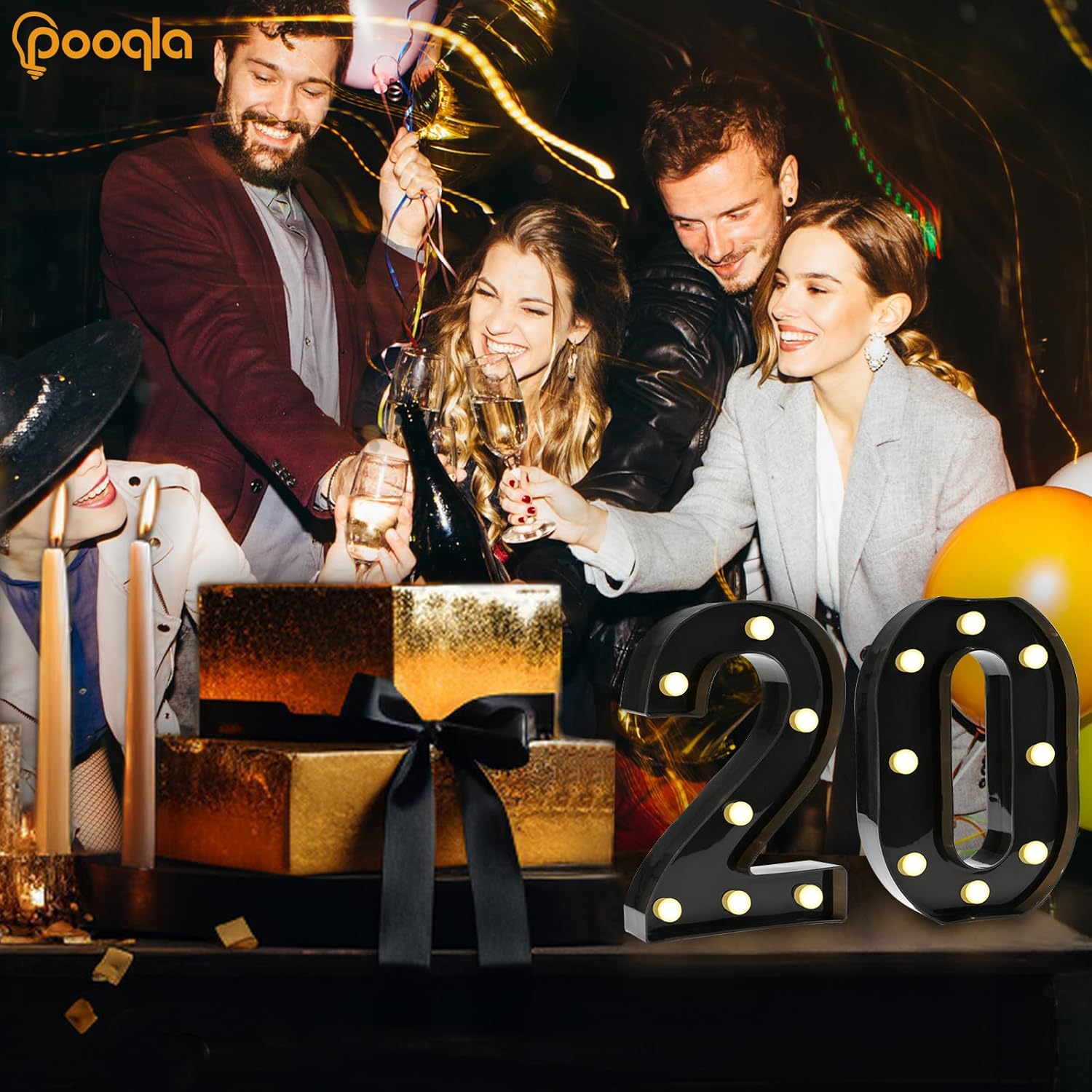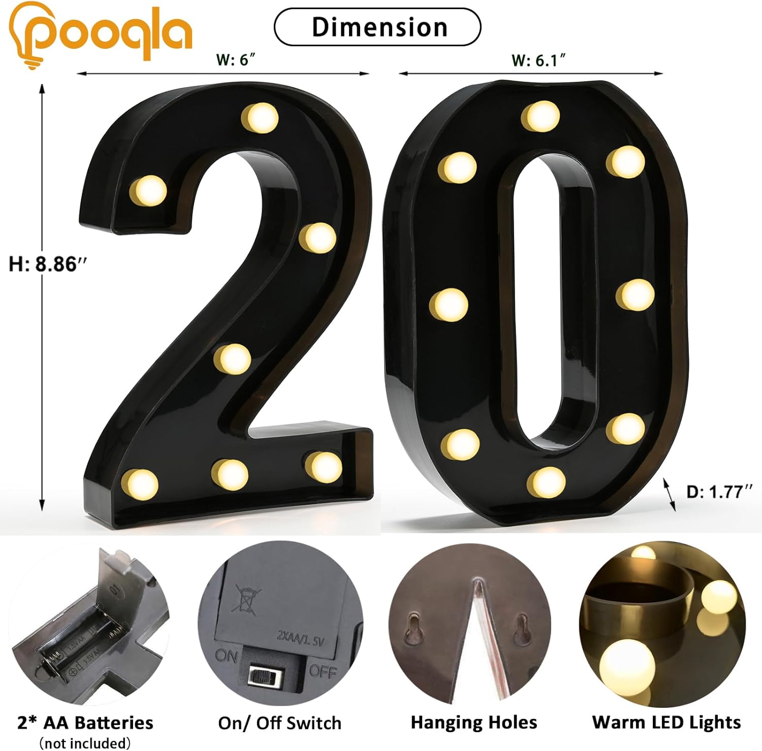 Pooqla Light Up Numbers, Decorative Marquee Number Light Sign for 20th Birthday Party Decor, LED Battery Powered Lighted Sign for Party, Lighted Number 20 for Wall Home Anniversary Decoration