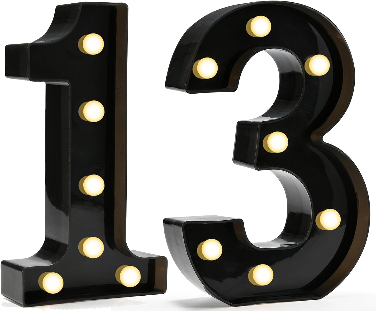 Pooqla Decorative Led Light Up Number Letters, Black Plastic Marquee Number Lights Sign for 13th Birthday Party Wedding Decor Battery Operated Black Number 13