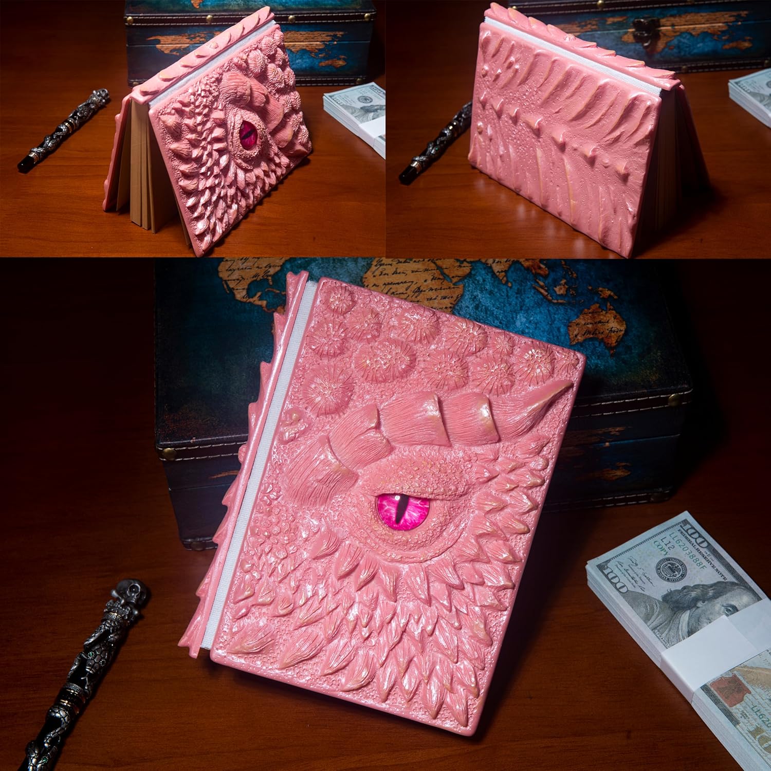 3D Dragon Eye Embossed Journal,Resin Engraving Notebook,Dnd notebook for Dragon Lovers ,Blank Paper,Hardcover Travel Notepad for Writing,Sketchbook,Collection,Gift,Decoration A4 and A5 Size (A5-Pink)