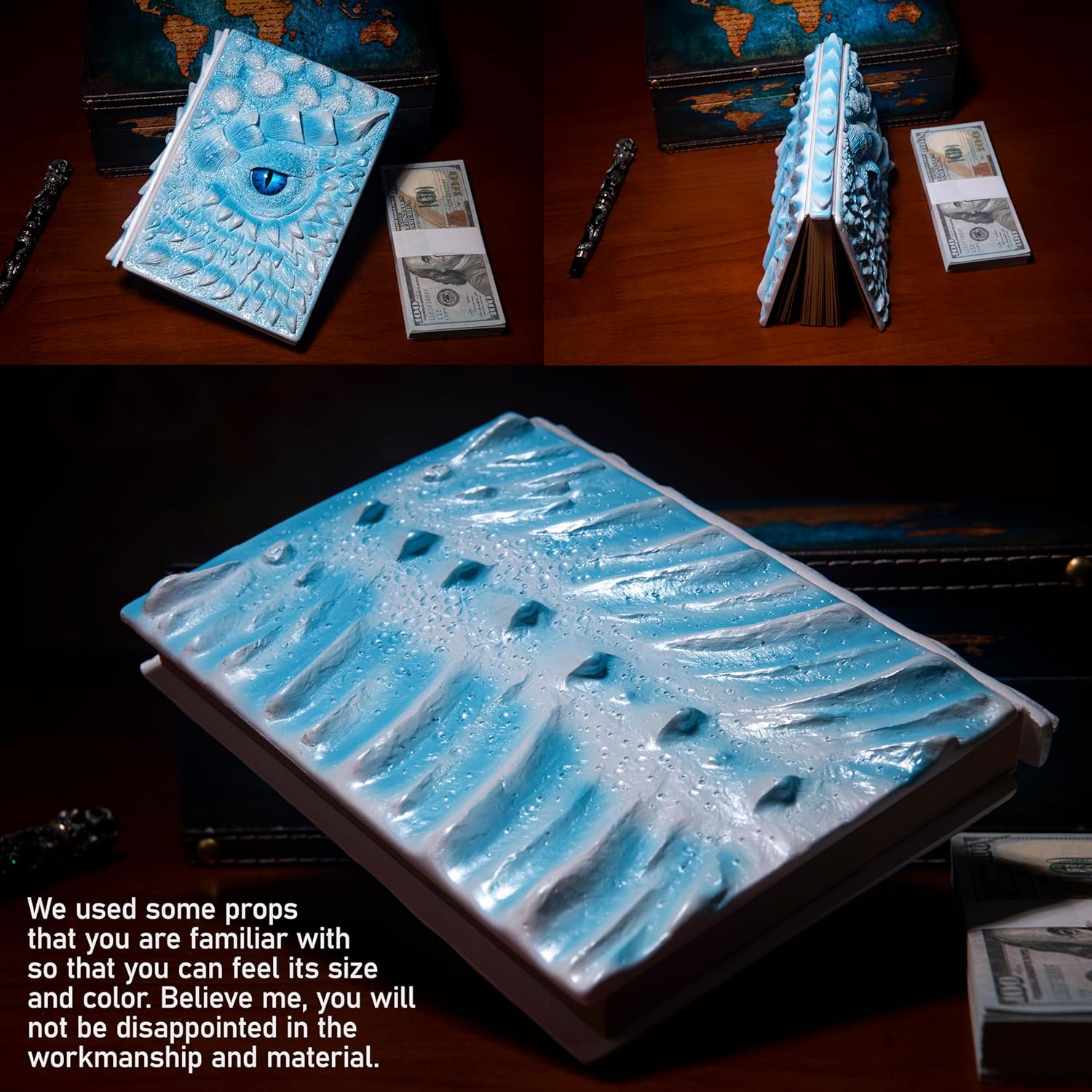 3D Dragon Eye Embossed Journal,Resin Engraving Notebook,Dnd notebook for Dragon Lovers ,Blank Paper,Hardcover Travel Notepad for Writing,Sketchbook,Collection,Gift,Decoration A4 and A5 Size (A5-Ice dragon)