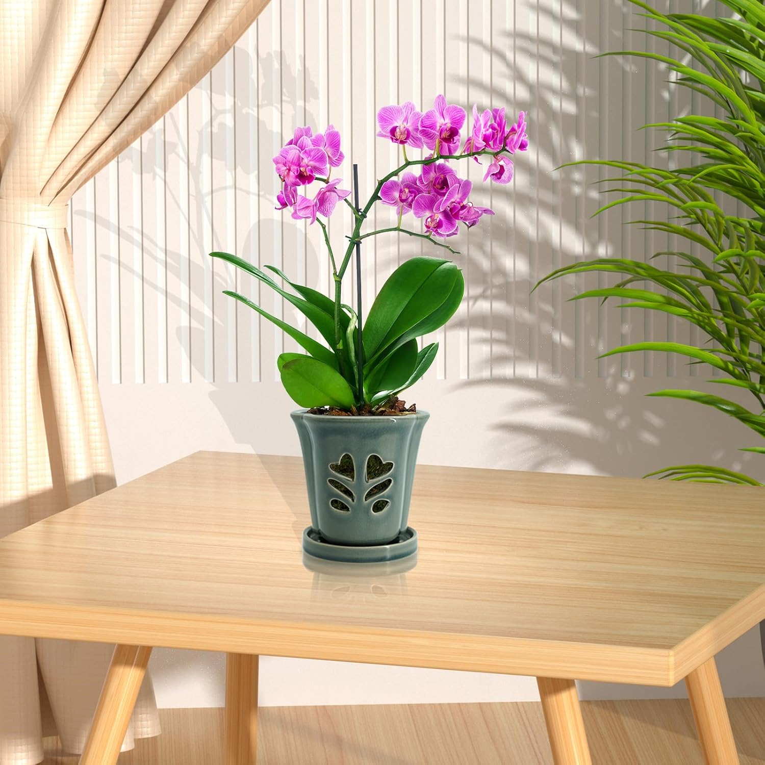 - [ Wider Plants Use ]The orchid pots with an attached saucer keep the planting area clean, making orchid pot suitable for placement in your living room, bedroom, balcony, windowsill, table, working desk or any other indoor or outdoor environment.Nice Looking and Perfect Home for Your Orchids.