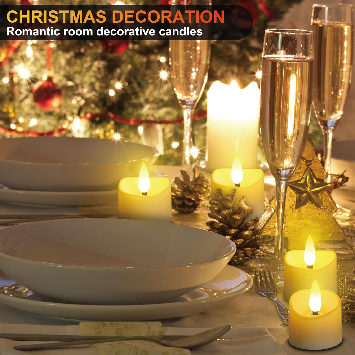 - 【Flameless Electronic Tealight】Flickering Electric Candles have an exceptionally natural 3D flame effect, which creates the same cozy atmosphere as a real candle. There is no risk of fire, making them ideal for households with small children or pets