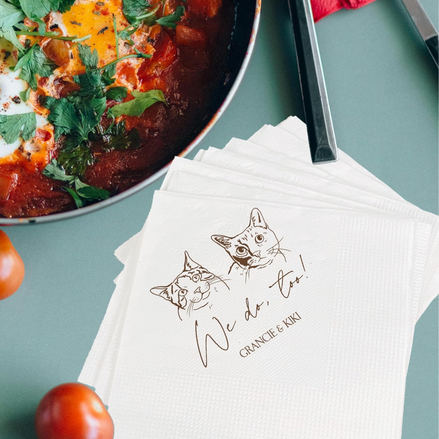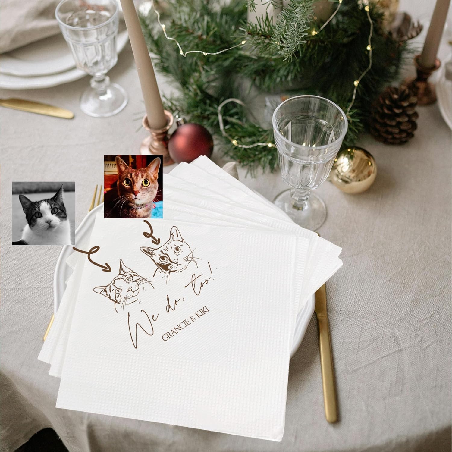 Luxury Personalized Illustrated Cat Wedding Napkins, Personalized Photo Napkins for Cat, Custom Wedding Cocktail, Bridal Shower, Engagement Party