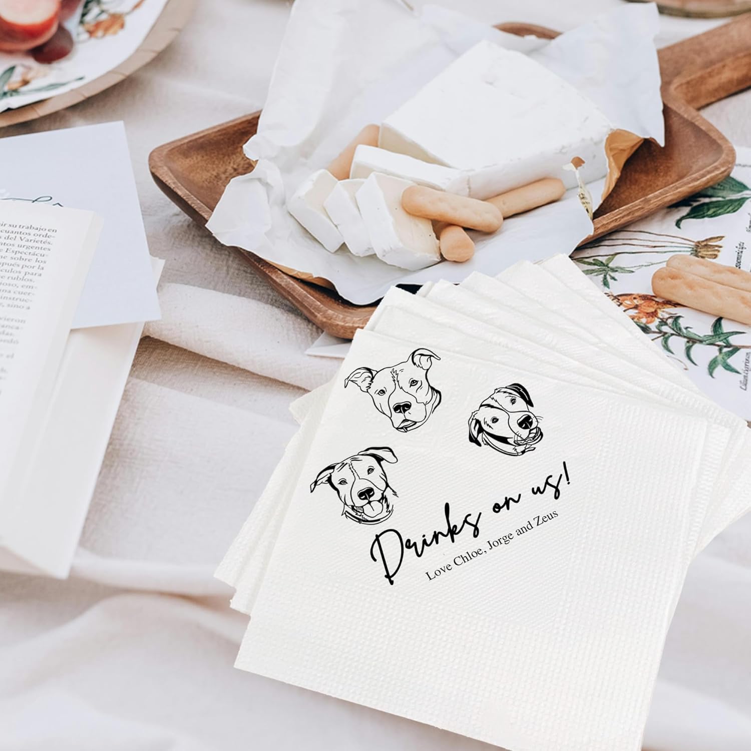 Luxury Customized Illustrated Dog Wedding Napkins, Personalized Photo Napkins for Dog, Custom Wedding Cocktail, Bridal Shower, Engagement Party