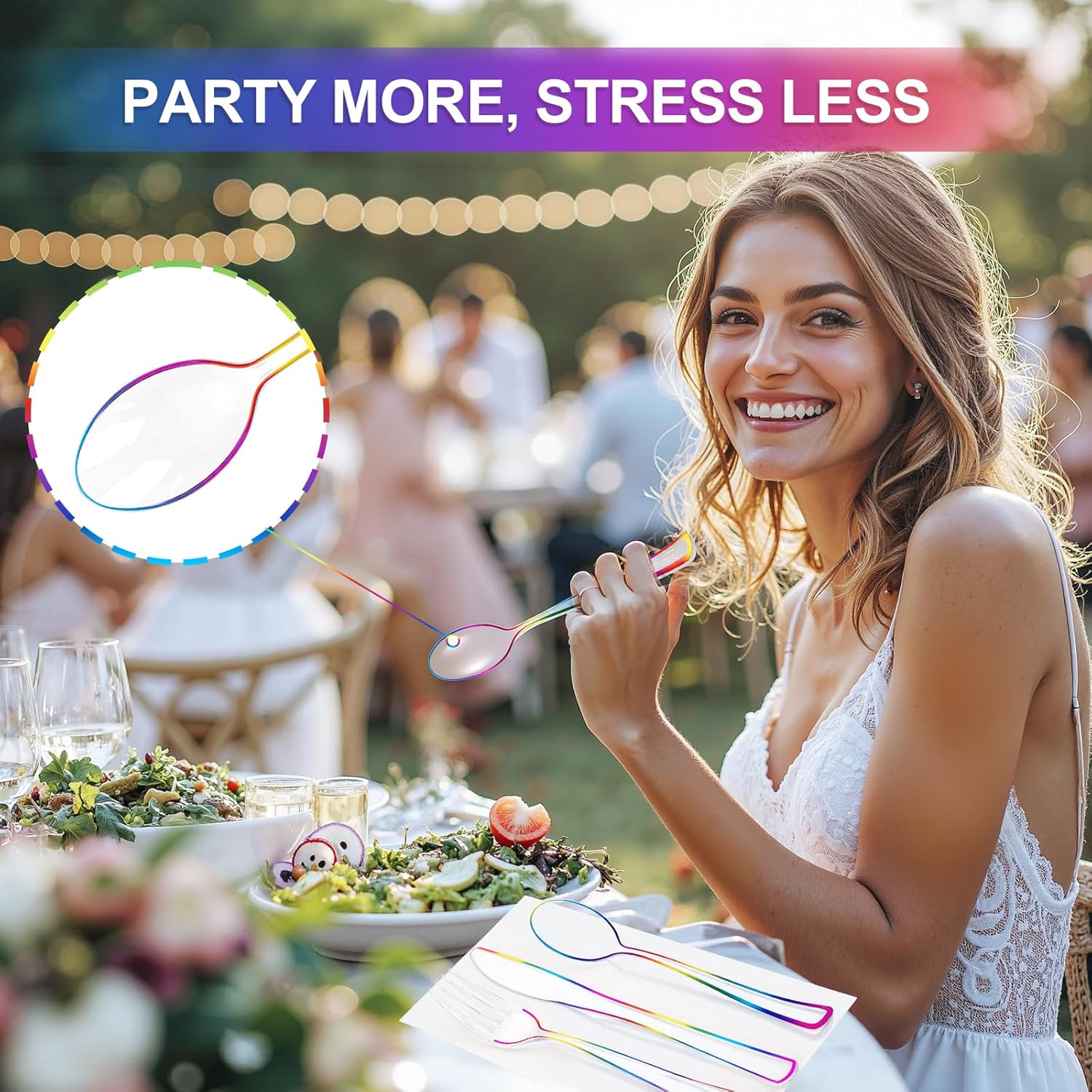 - YOU WILL GET: The rainbow plastic silverware includes 60 forks, 60 knives and 60 poons for 60 guests.