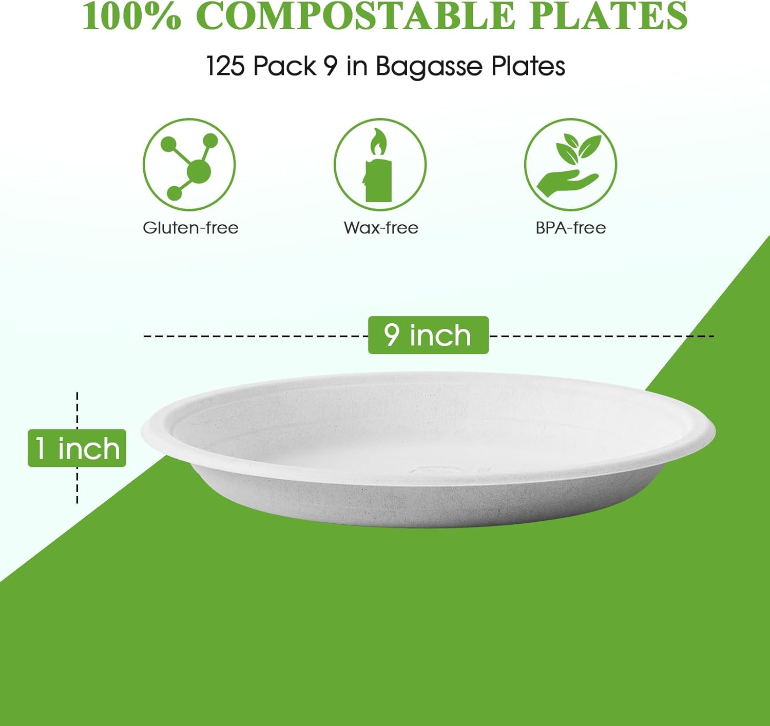 - 100% Compostable: Certified by BPI, these eco paper plates, made from bagasse, do not need to be sent to a waste treatment plant. They can be composted and back to nature completely after 90 days