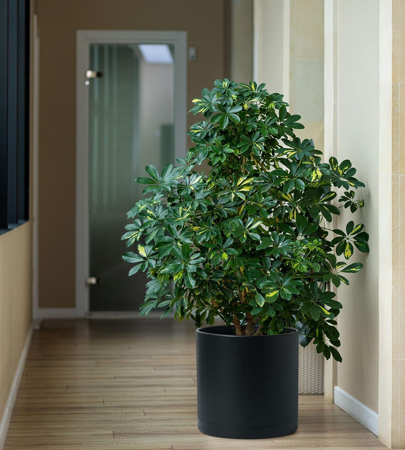 D'vine Dev 2 Pack 12 Inch Modern Plastic Plant Pots, Cylindrical Garden Planters for Plants with Drainage Holes and Saucers, Black, 74-Y-P-1
