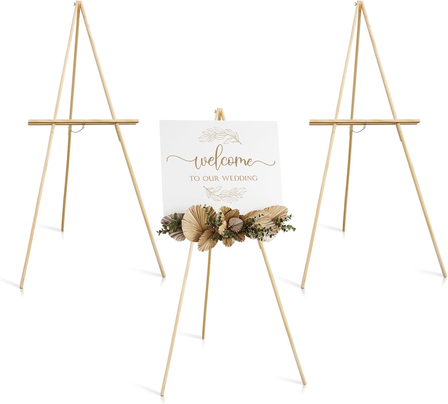 Wooden Easels for Display, Wood Easels for Wedding Signs, Stand Tripod with Adjustable Tray A-Frame Light Duty for Poster, Welcome Sign, Art Show & Baby Shower (3 Pack, 63")