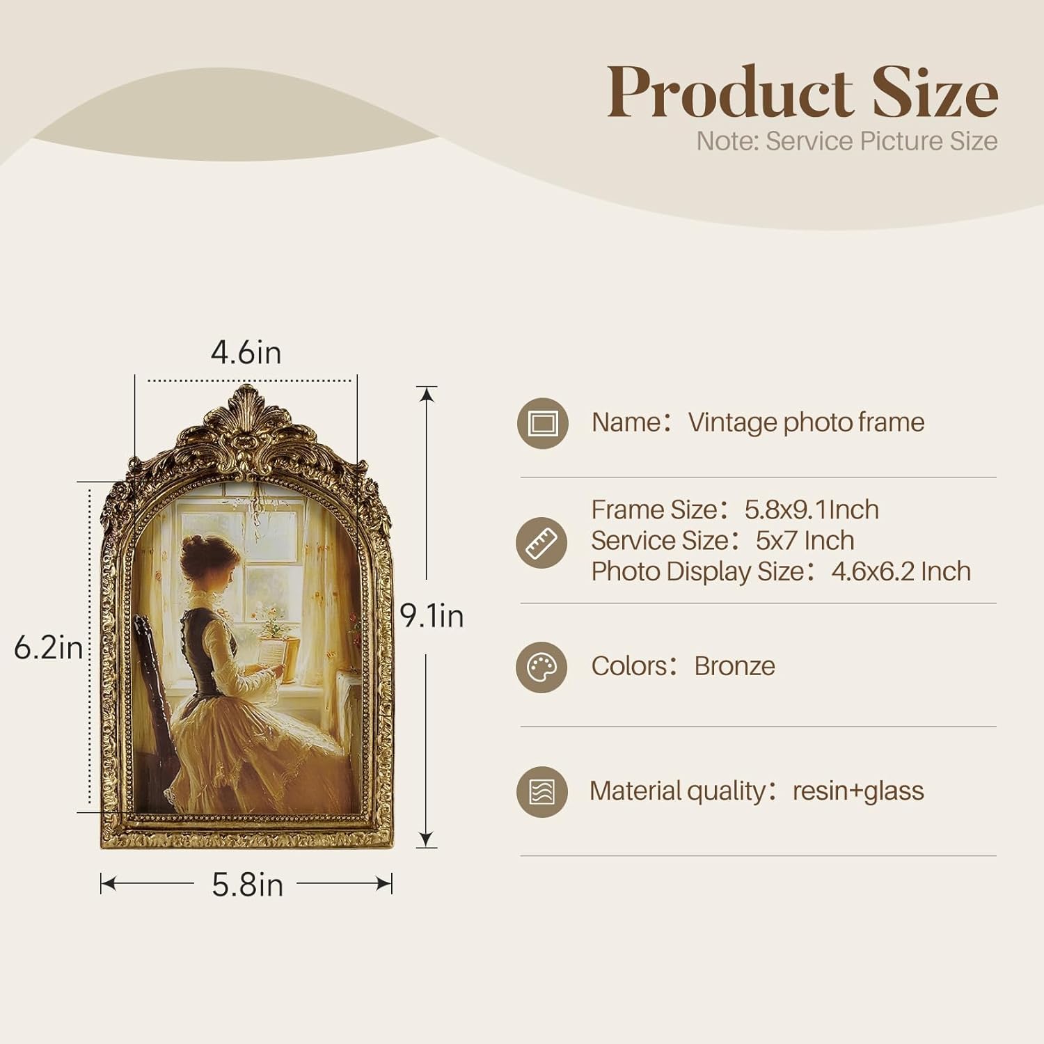- Vintage Arch-Top Frame with HD Glass โ Classic gold frame with high-definition glass cover protects your photo and offers a crystal-clear view.