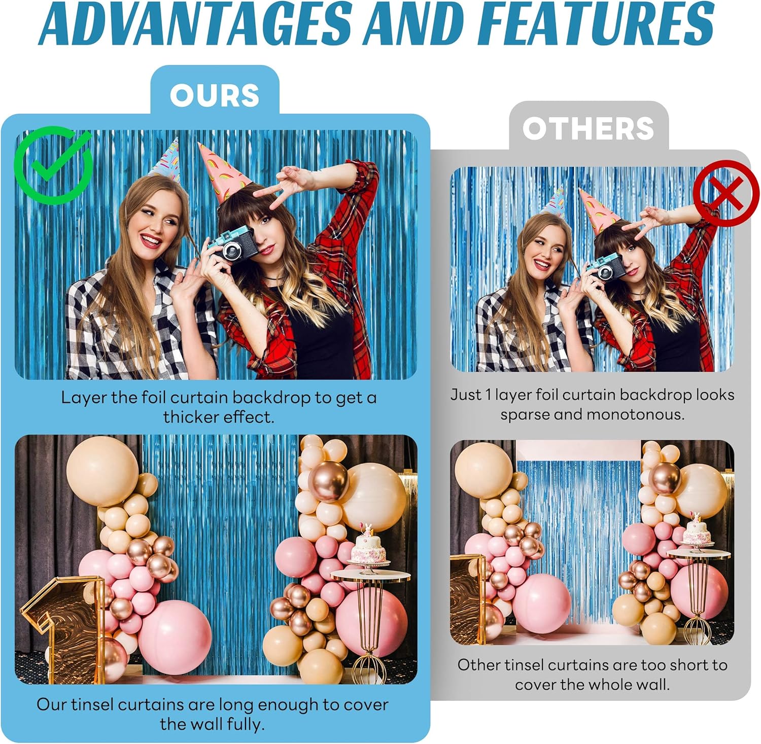 - Package includes: 10 pack blue foil fringe curtains with exquisite packaging