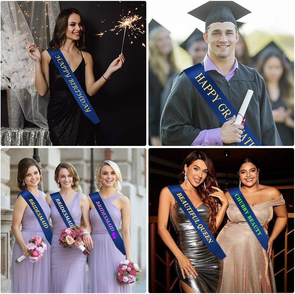 - 【Party Sash】 Suitable for birthdays, weddings, graduations, beauty pageants, bachelorette parties, homecomings, Christmas, Halloween, Mardi Gras, party for any occasion and will make you feel like a true VIP. senior sashes class of 2025 bride to be sash miss congeniality sash pageant sash prom queen sash miss america sash miss americana sash 21st birthday sash girl scout sash mom to be sash blank sash senior sash blank glitter sash for women queen sash mom to be sash pink silk sash adult