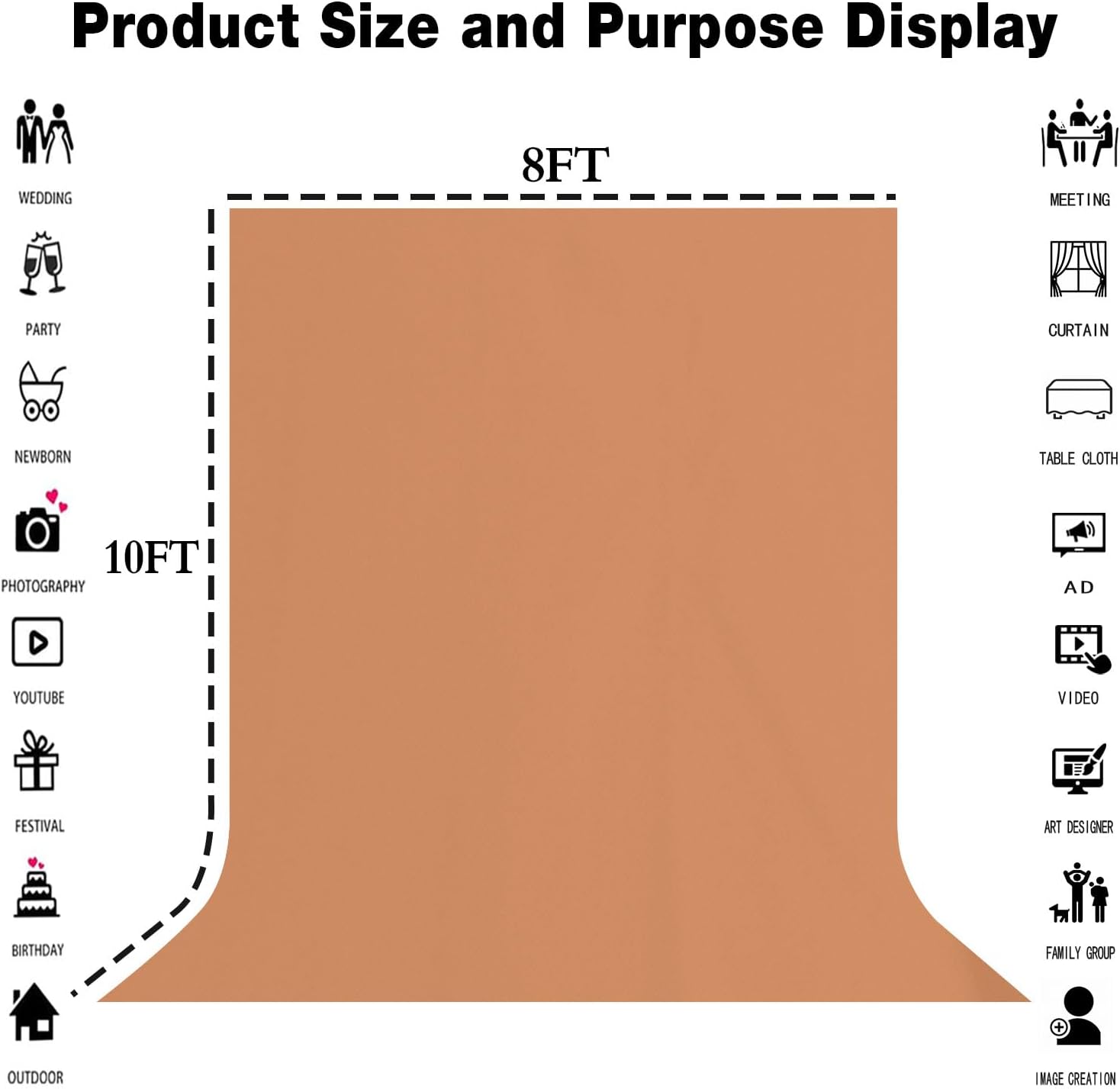 - Product attribute --8ft wide Γ10ft tall. This product is convenient for daily shooting, and is characterized by light weight, and the thickness of the material is normal