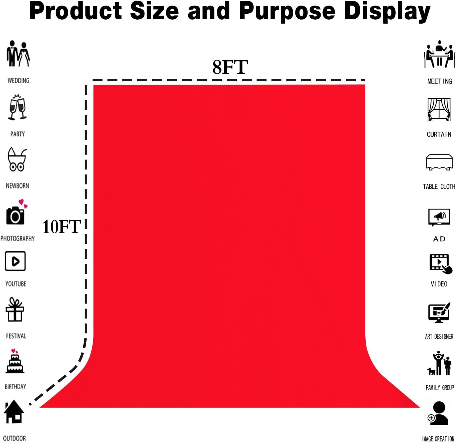 8x10FT Red Screen Backdrop for Photography Red Photo Booth Backdrop for Photography Background Video Recording Parties Curtain