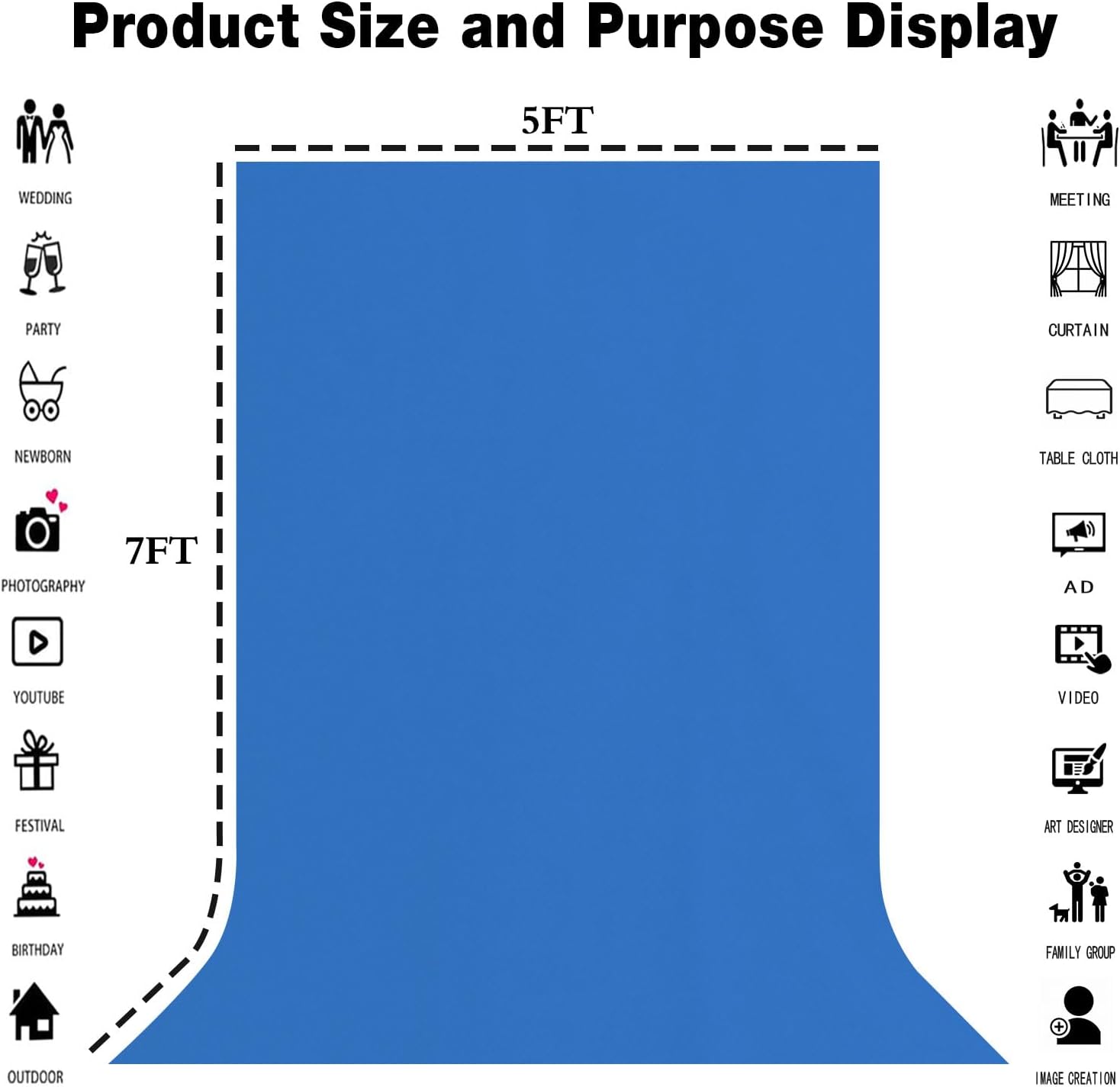 - Product attribute --5ft wide Γ7ft tall. This product is convenient for daily shooting, and is characterized by light weight, and the thickness of the material is normal