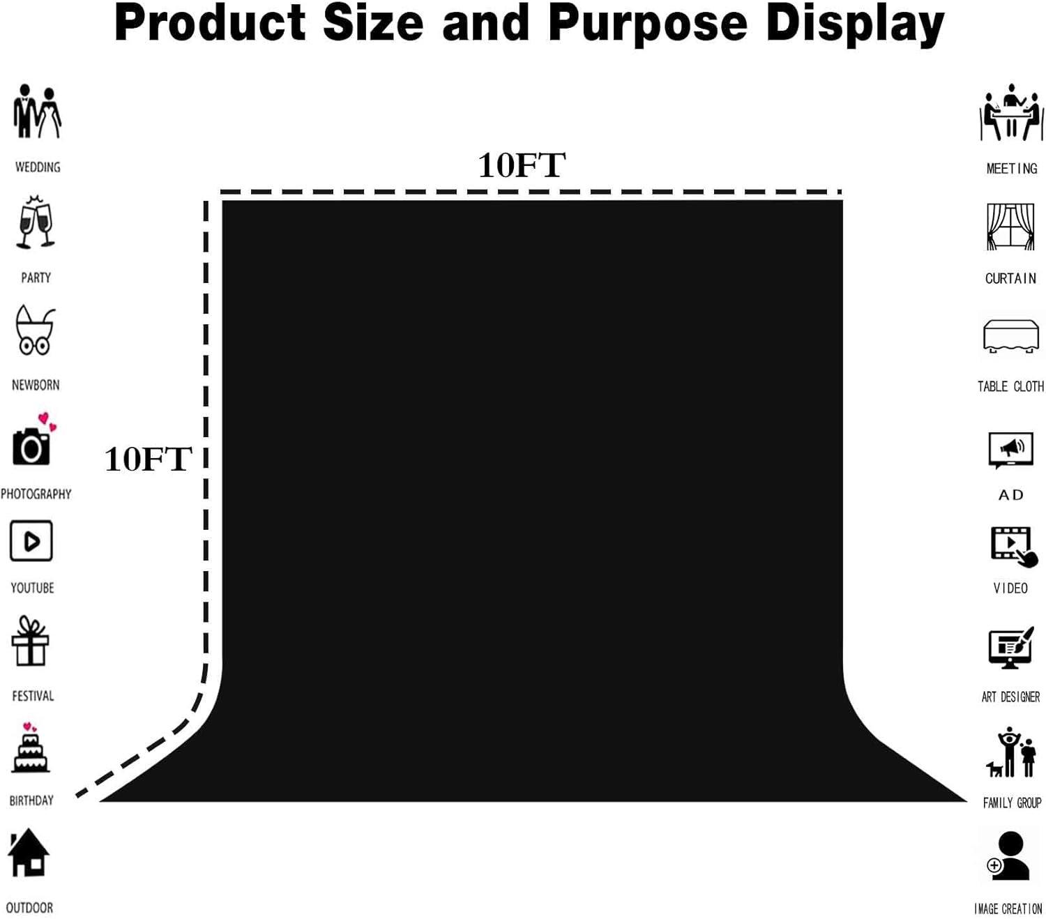 10x10ft Big Black Screen Backdrops Solid Black Photo Backdrops for Photoshoot, Photography Background for Meeting Wall, Party, Videos