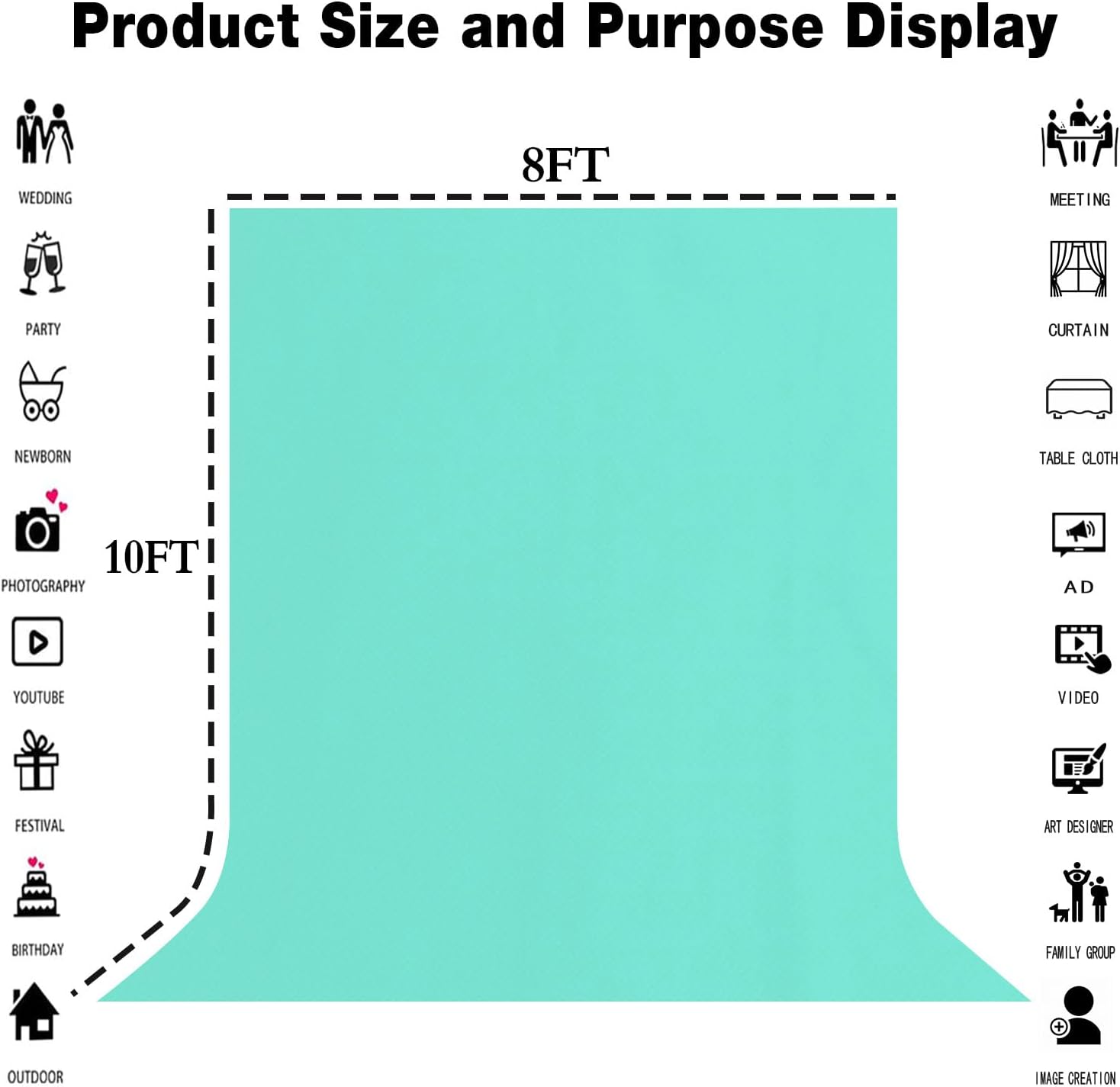 - Product attribute --8ft wide Γ10ft tall. This product is convenient for daily shooting, and is characterized by light weight, and the thickness of the material is normal