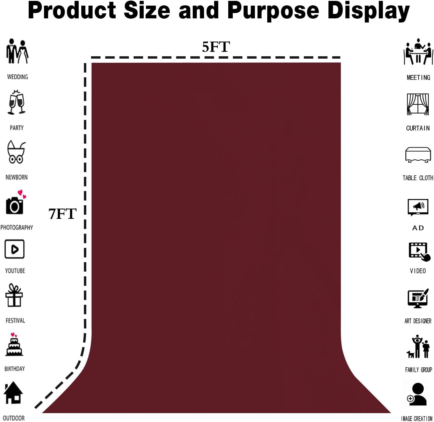 Wine Red Backdrop 5x7FT Screen Backdrop for Photography Photo Booth Photoshoot Background Screen Video Recording Parties Curtain