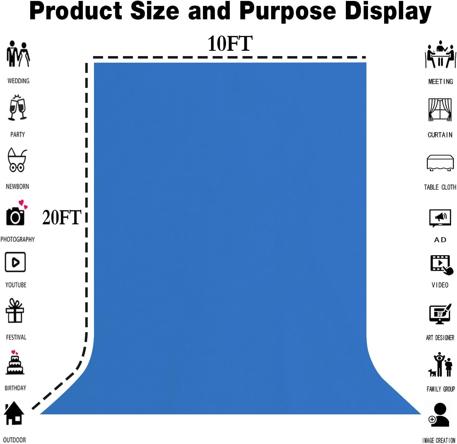 10x20FT Royal Blue Screen Backdrop for Photography, Large High Density Blue Photo Background