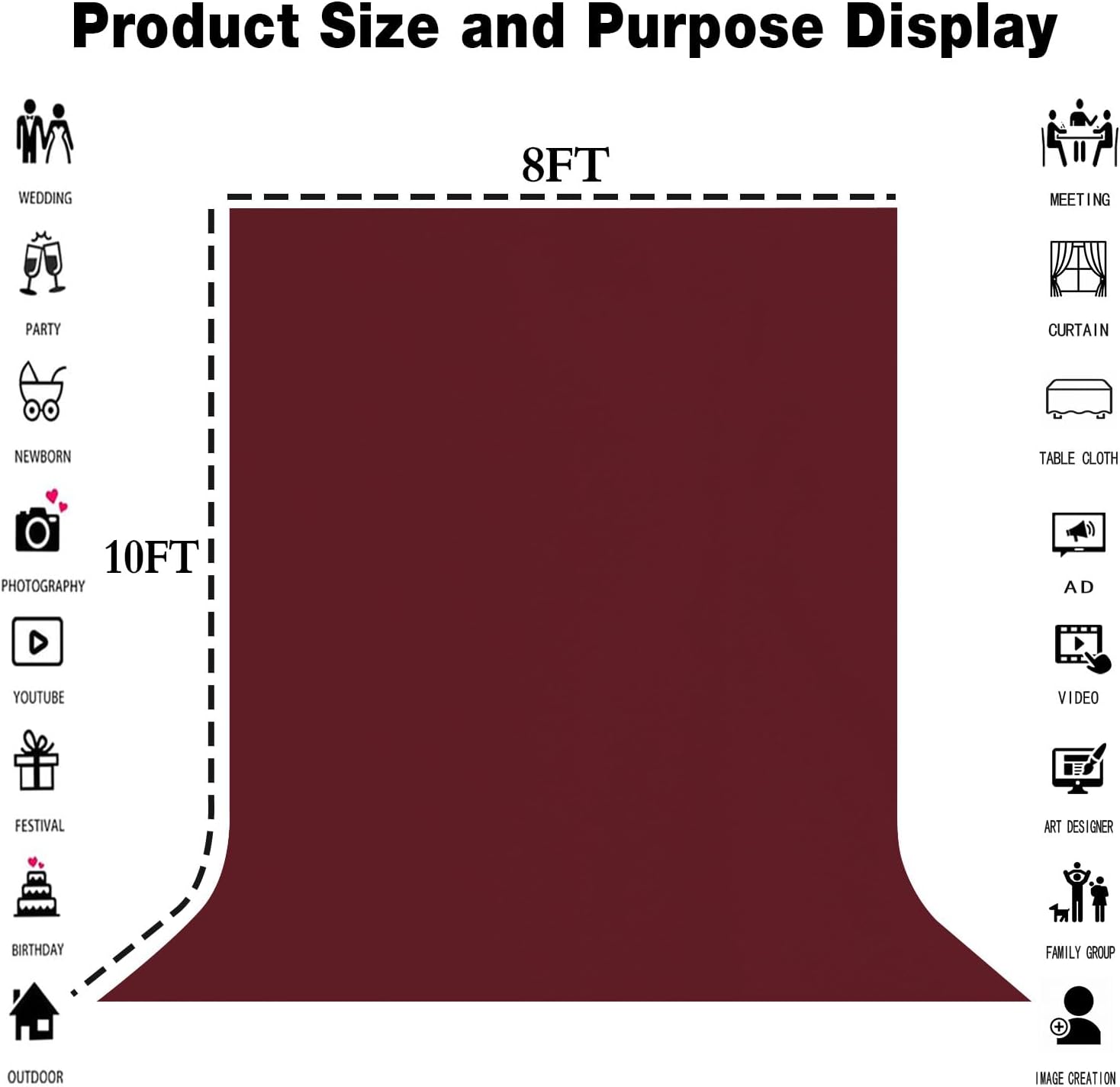 8x10FT Burgundy Wine Red Screen Backdrop for Photography Photo Booth Recording Parties Curtain