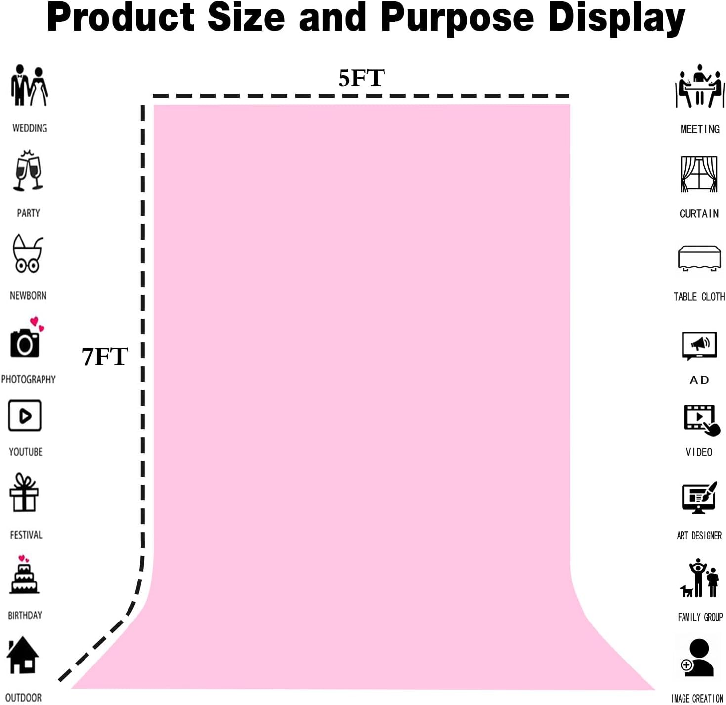 5x7FT Pink Backdrop for Screen Photography, High-end Polyester Photo Background for Photoshoot, Party, Video