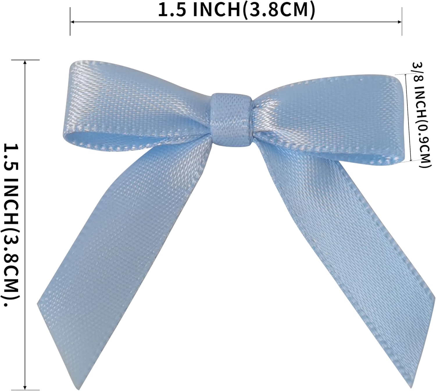 - Bow height: 1 1/2" Bow width: 1 1/2". Ribbon width 3/8-Inch