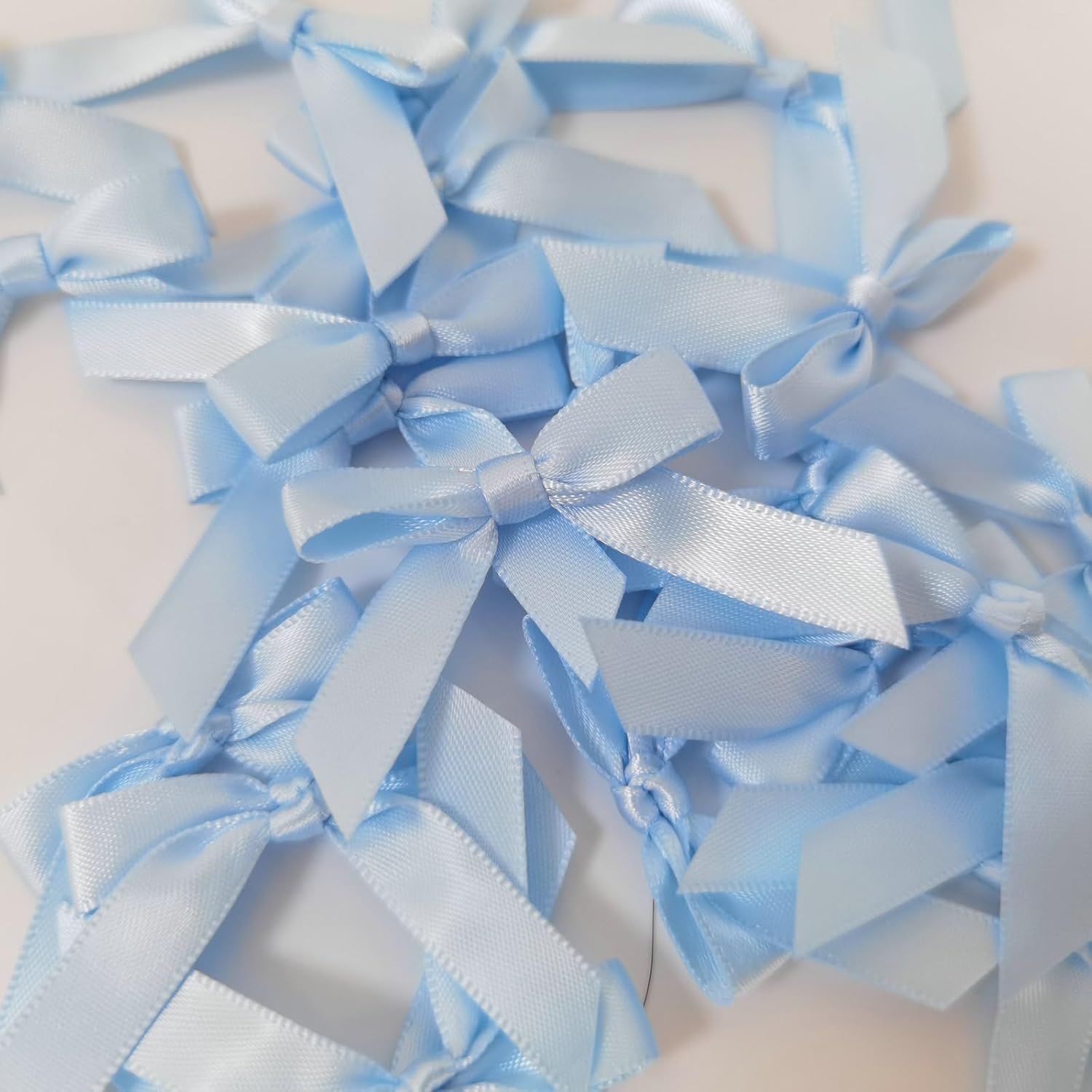 50pcs 1-1/2" Mini Light Blue Satin Ribbon Bows Without Twist Ties for Crafts Gift Wrapping Packing Christmas Baby Shower Decoration (Light Blue)