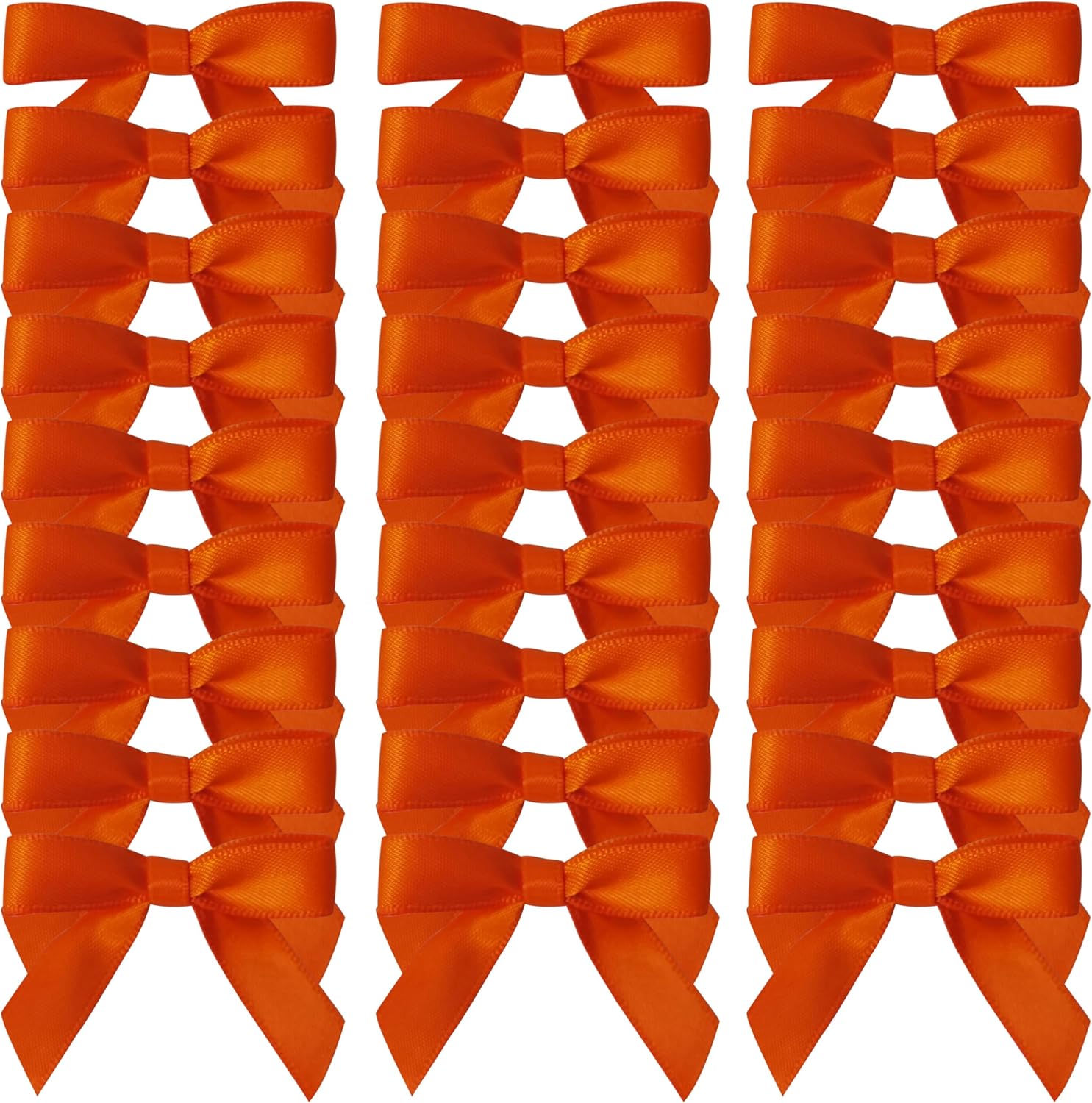 50pcs 1-1/2" Mini Orange Satin Ribbon Bows Without Twist Ties for Crafts Gift Wrapping Packing Christmas Decoration (Orange)