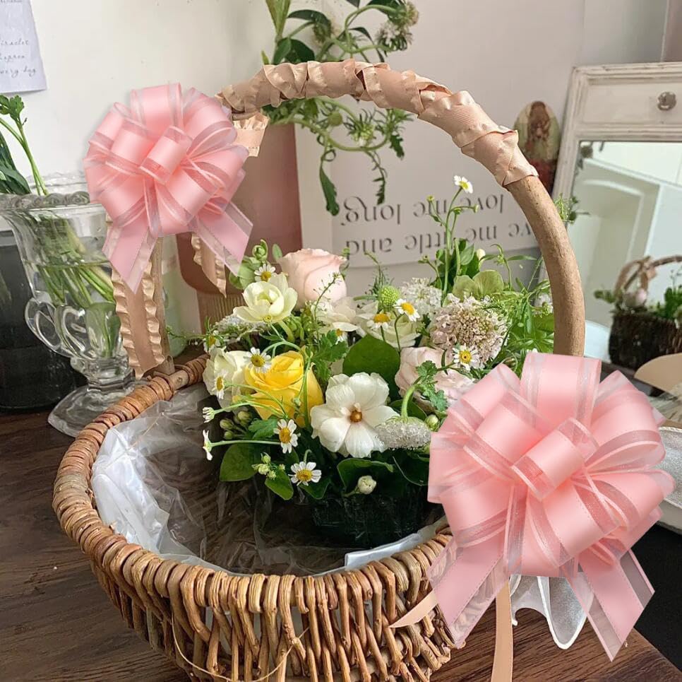 ZhXu Shuo 6 Pieces Large Pull Bows, 6 inches, Organza Fabric, Pink, Wedding & Birthday Occasion, Special Occasions, Classic & Traditional Style, Solid Pattern