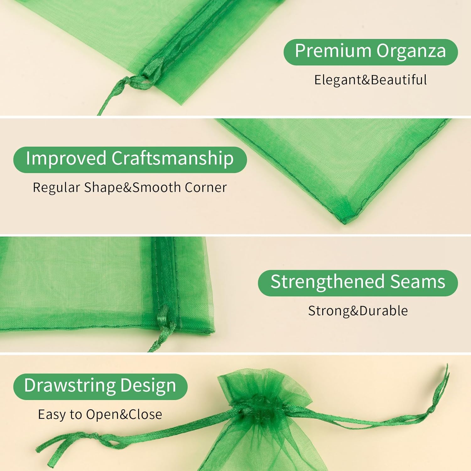- Package Details: Package comes in 50 pcs green organza bags, with a size of 6x9 inch, offering a practical and stylish solution for organizing and presenting small items.