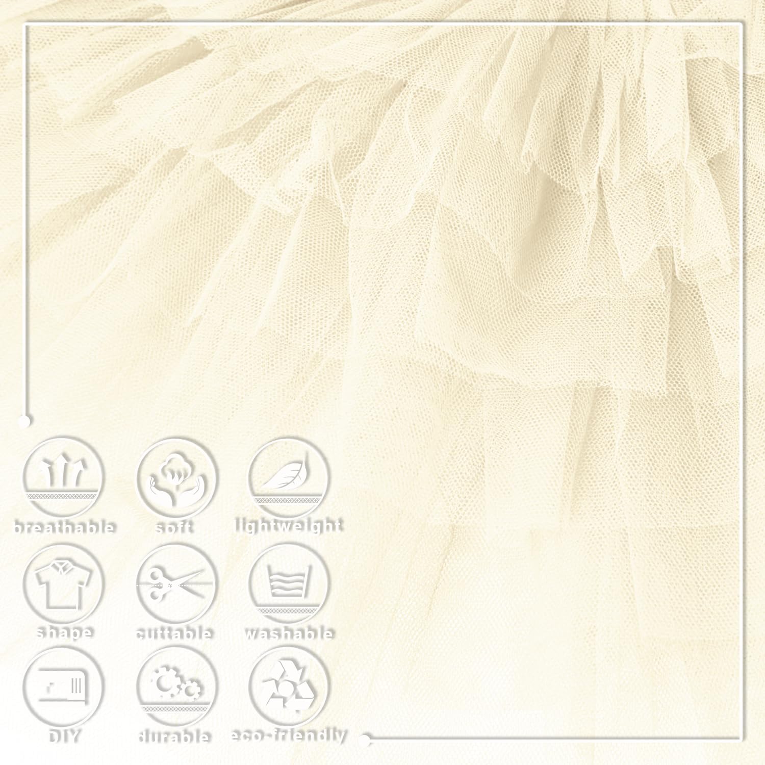 - Strong Decorativeness: Tulle fabric can be used for tutu skirts, chair bows, gift wrapping, DIY crafts, to create soft light and a romantic atmosphere; it can also be made as lace or trimming edges for clothing, to add a sense of fashion.