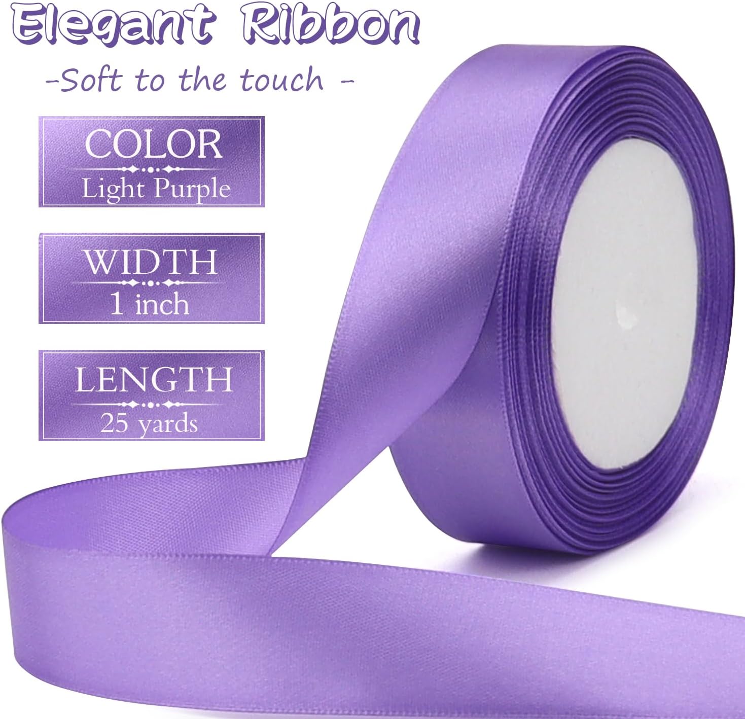 Light purple Solid Satin Ribbon 1 Inch 25 Yards Solid Polyester Fabric Ribbon for Gift Wrapping Wedding Christmas Baby Shower Birthday Party Decoration Handmade Immortal Flower Craft