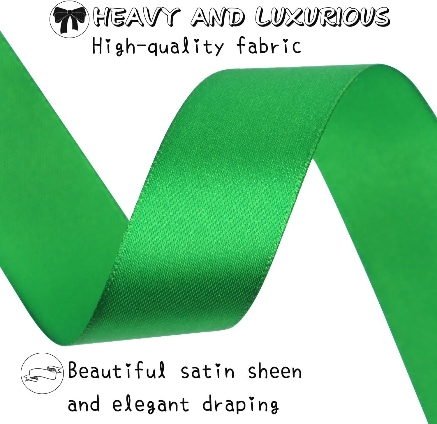 Green Solid Satin Ribbon 1 Inch 25 Yards Solid Polyester Fabric Ribbon for Gift Wrapping Wedding Christmas Baby Shower Birthday Party Decoration Handmade Immortal Flower Craft