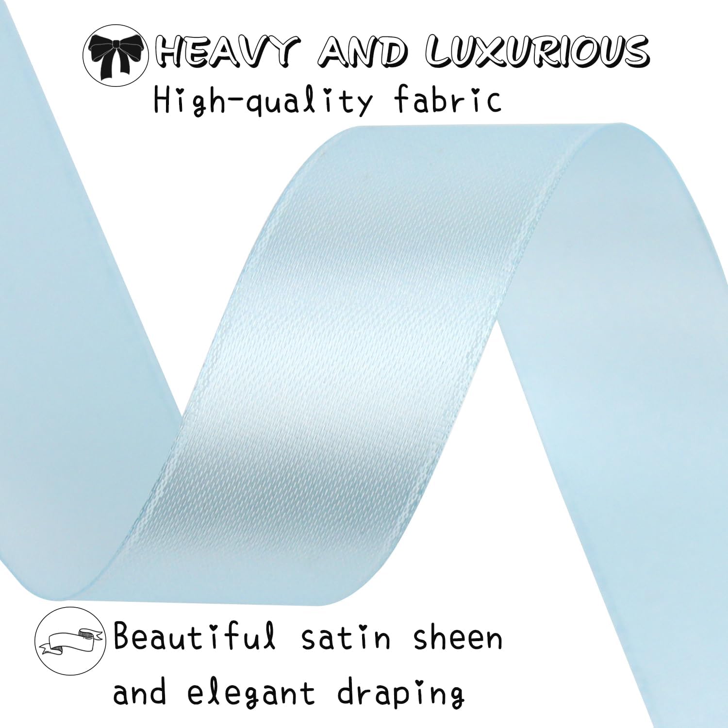 Sky blue Solid Satin Ribbon 1 Inch 50 Yards Solid Polyester Fabric Ribbon for Gift Wrapping Wedding Christmas Baby Shower Birthday Party Decoration Handmade Immortal Flower Craft