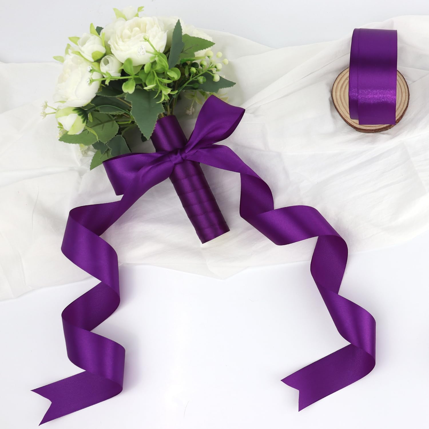 Purple Solid Satin Ribbon 1-1/2 Inch 25 Yards Solid Polyester Fabric Ribbon for Gift Wrapping Wedding Christmas Baby Shower Birthday Party Decoration Handmade Immortal Flower Craft