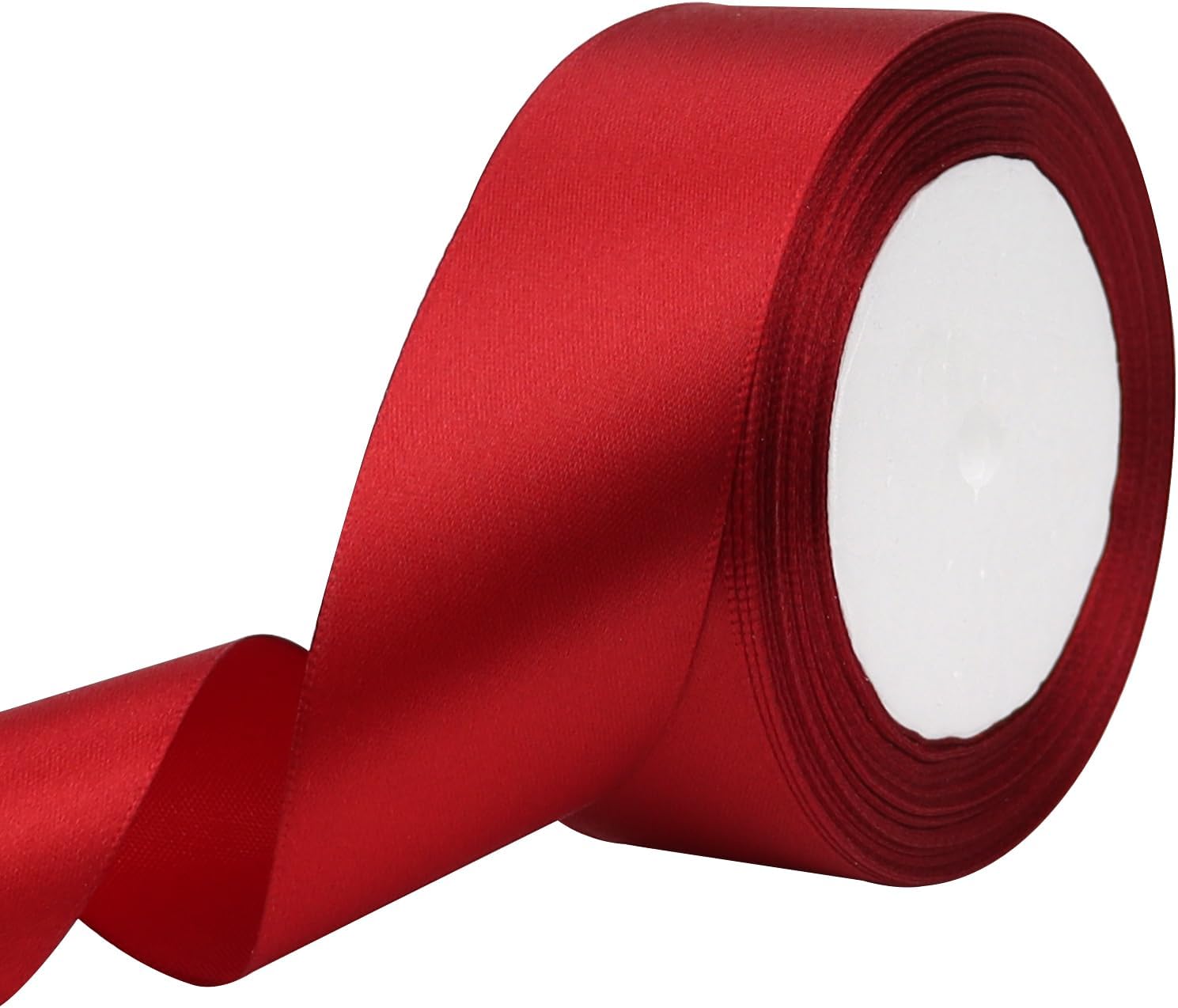 Deep red Solid Satin Ribbon 1-1/2 Inch 25 Yards Solid Polyester Fabric Ribbon for Gift Wrapping Wedding Christmas Baby Shower Birthday Party Decoration Handmade Immortal Flower Craft