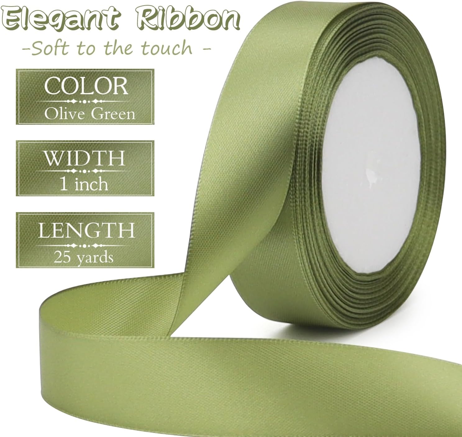 Olive Green Solid Satin Ribbon 1 Inch 25 Yards Solid Polyester Fabric Ribbon for Gift Wrapping Wedding Christmas Baby Shower Birthday Party Decoration Handmade Immortal Flower Craft
